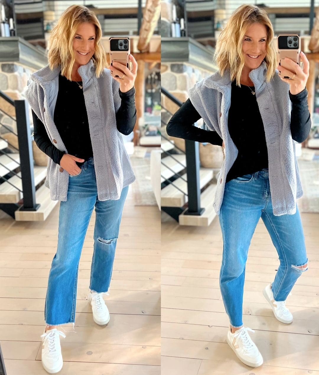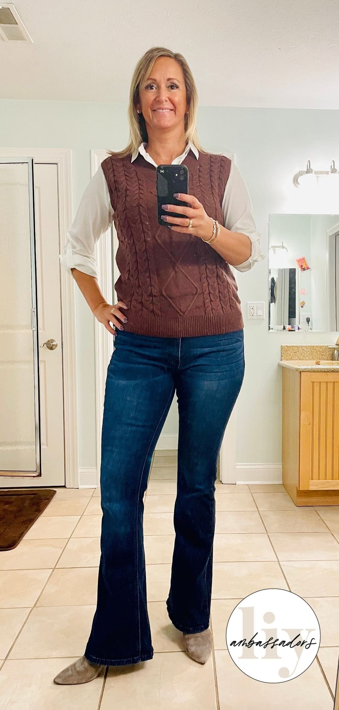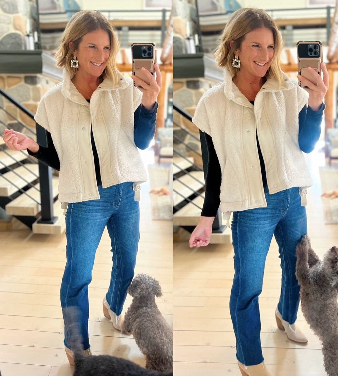 Vest [runs large] // Jeans [true to size, wearing in 4] // Earrings [use code LIY20]