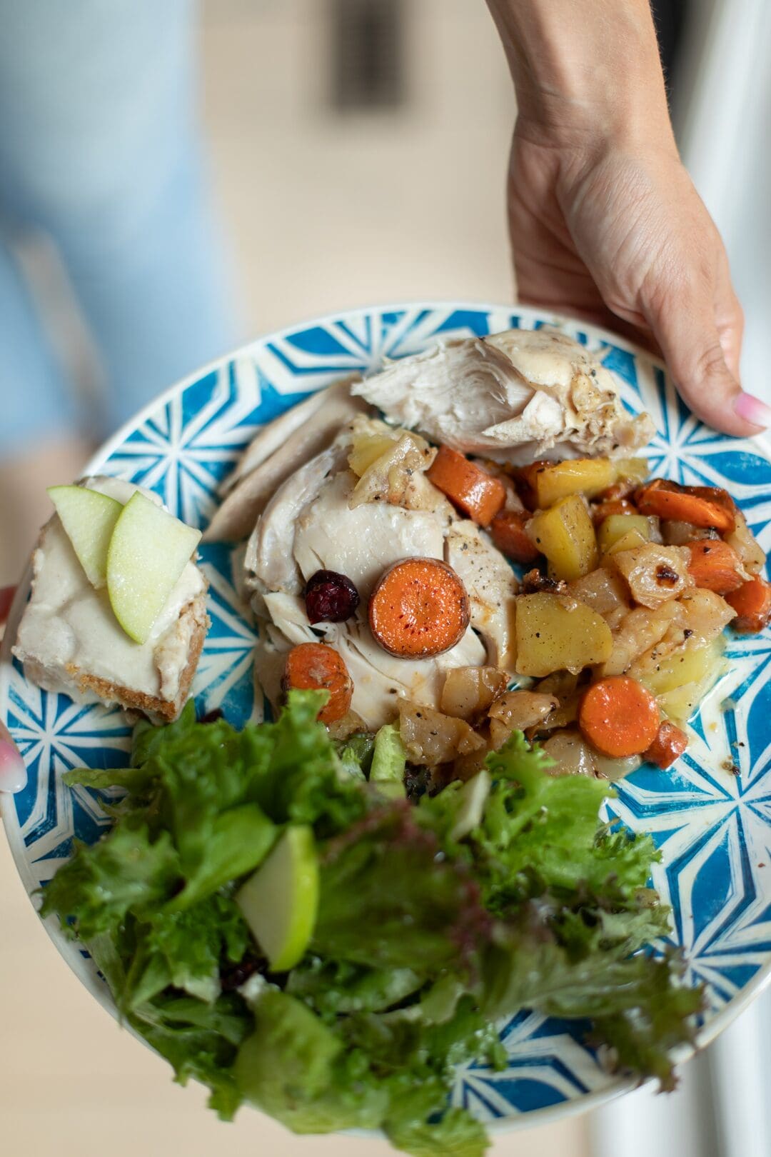 You can also “eyeball” the amounts of veggies/apples to chicken ratio and adjust to your liking!