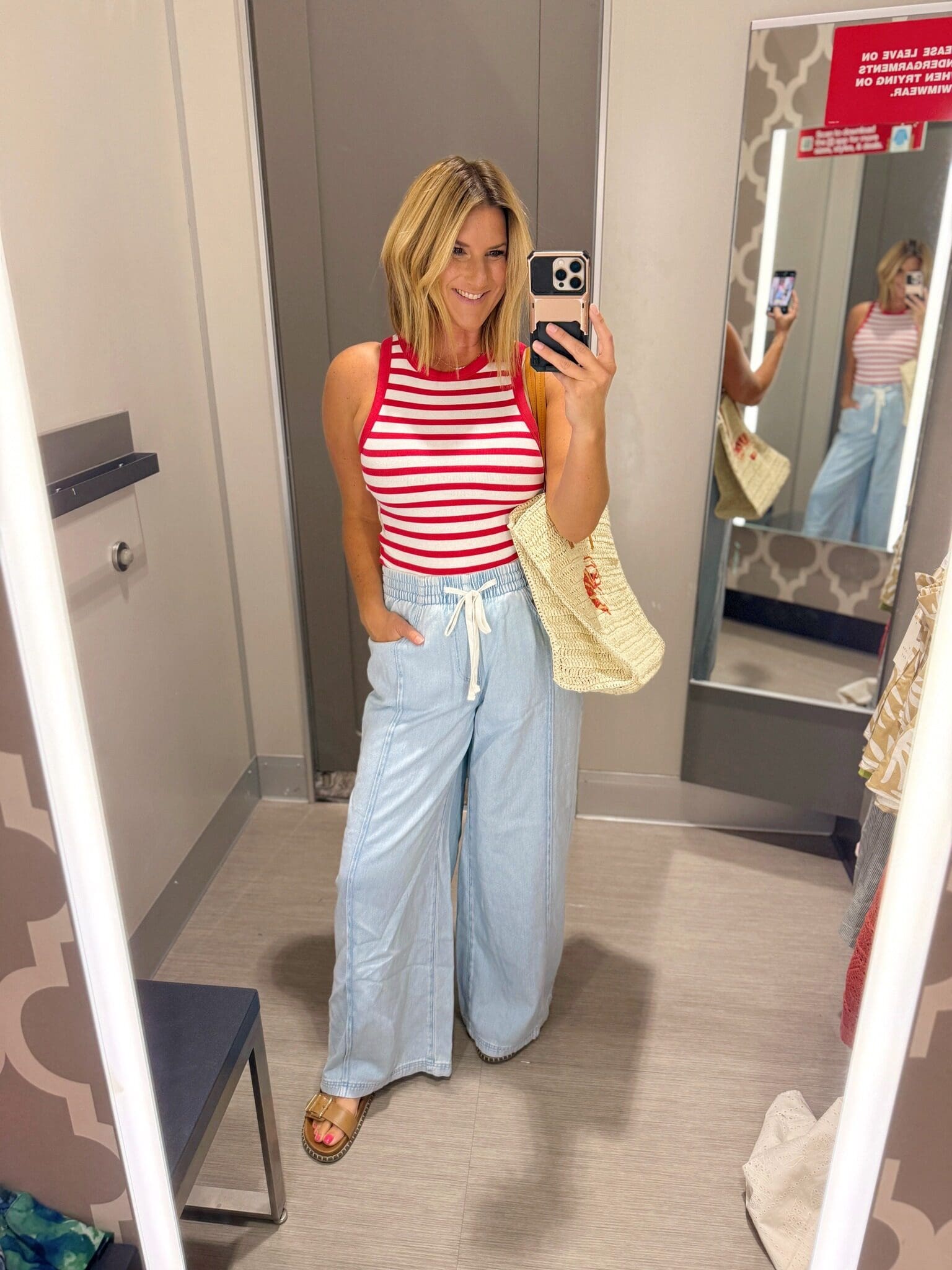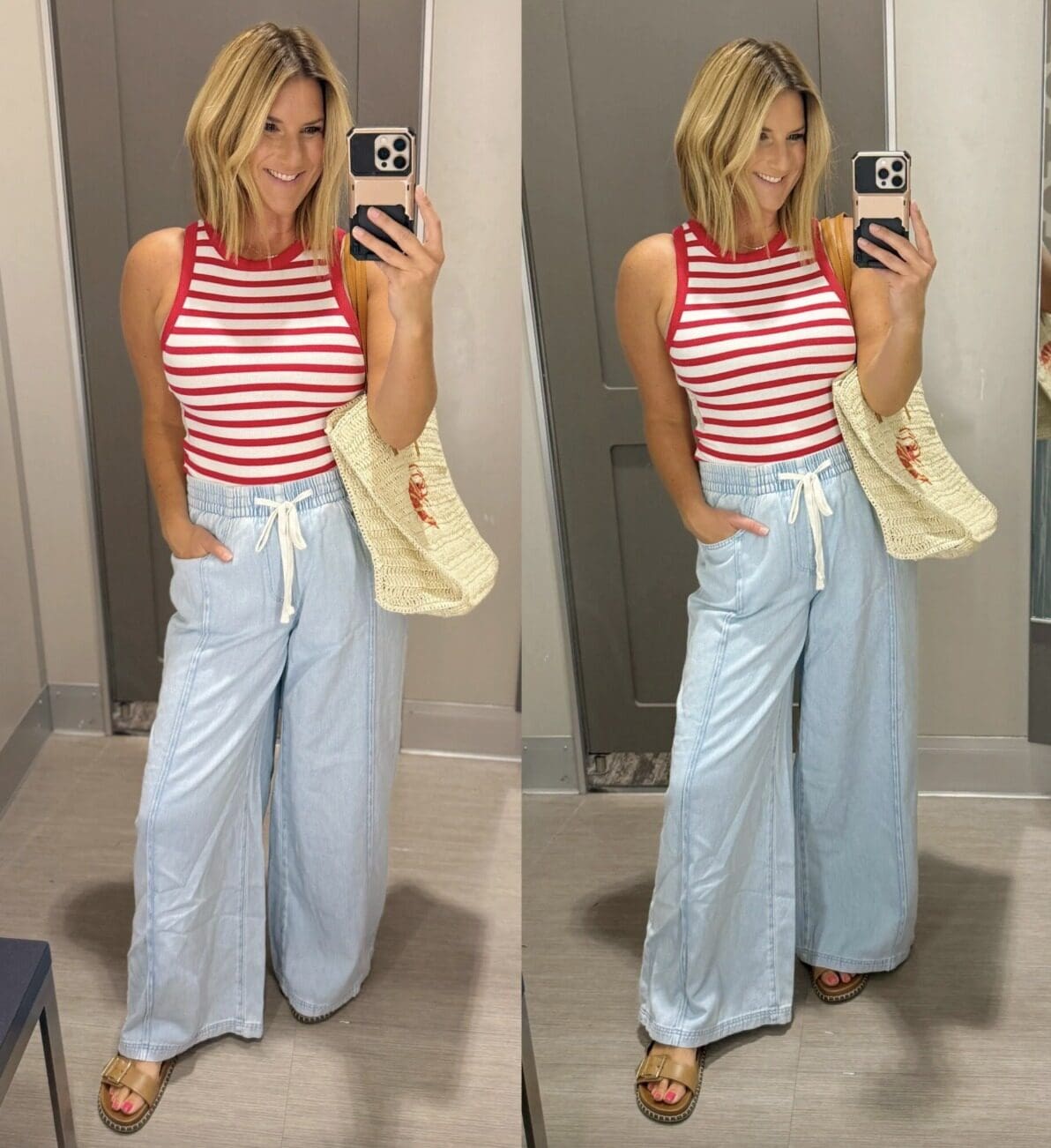 Pants [size down if in between, wearing in small] // Tank [size up if in between, wearing in L for comfort] // Sandals [true to size] // Bag