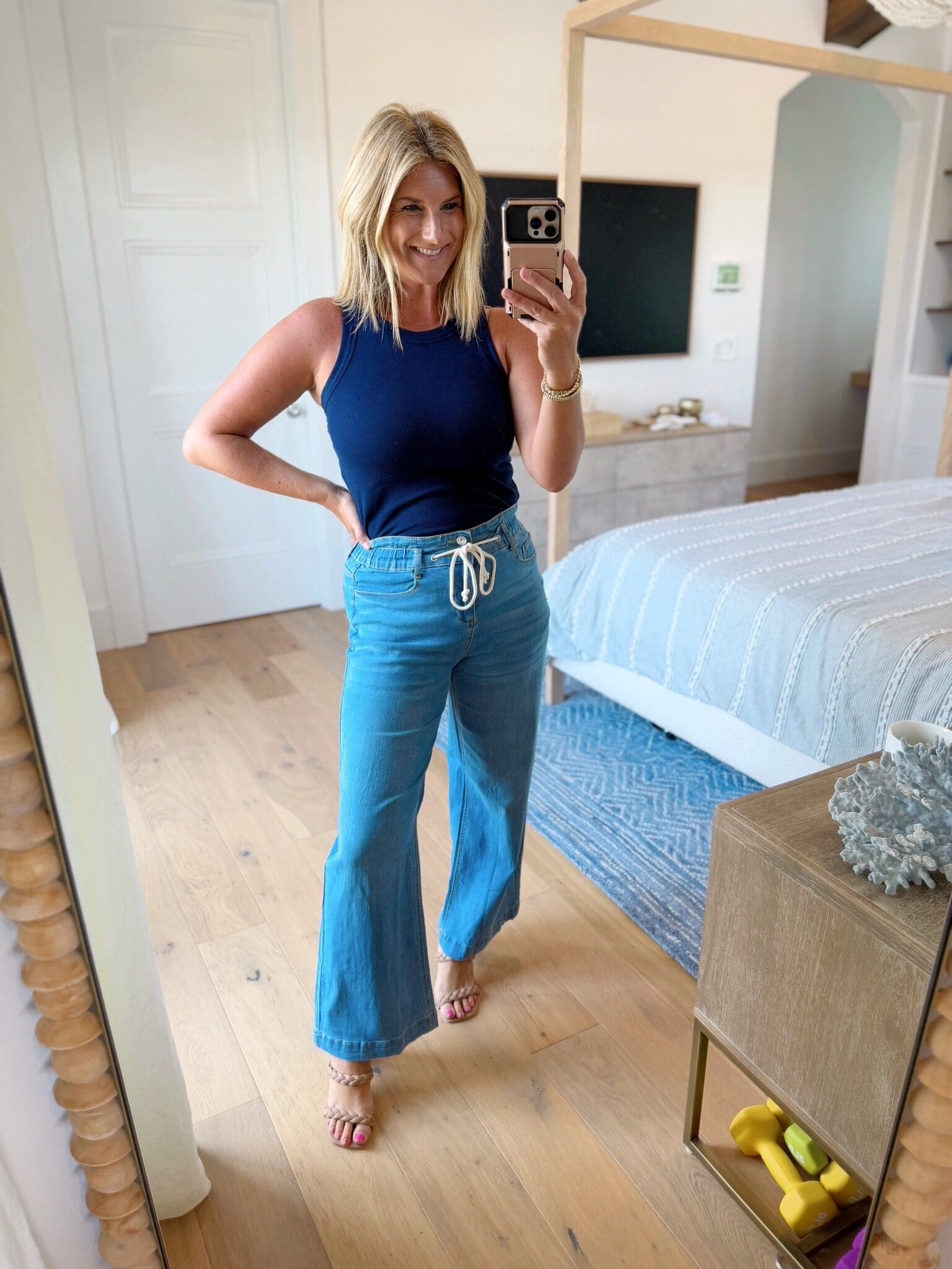 Jeans [size down, wearing color bay blue] // Top [part of set! Size up for length] // Sandals [true to size]