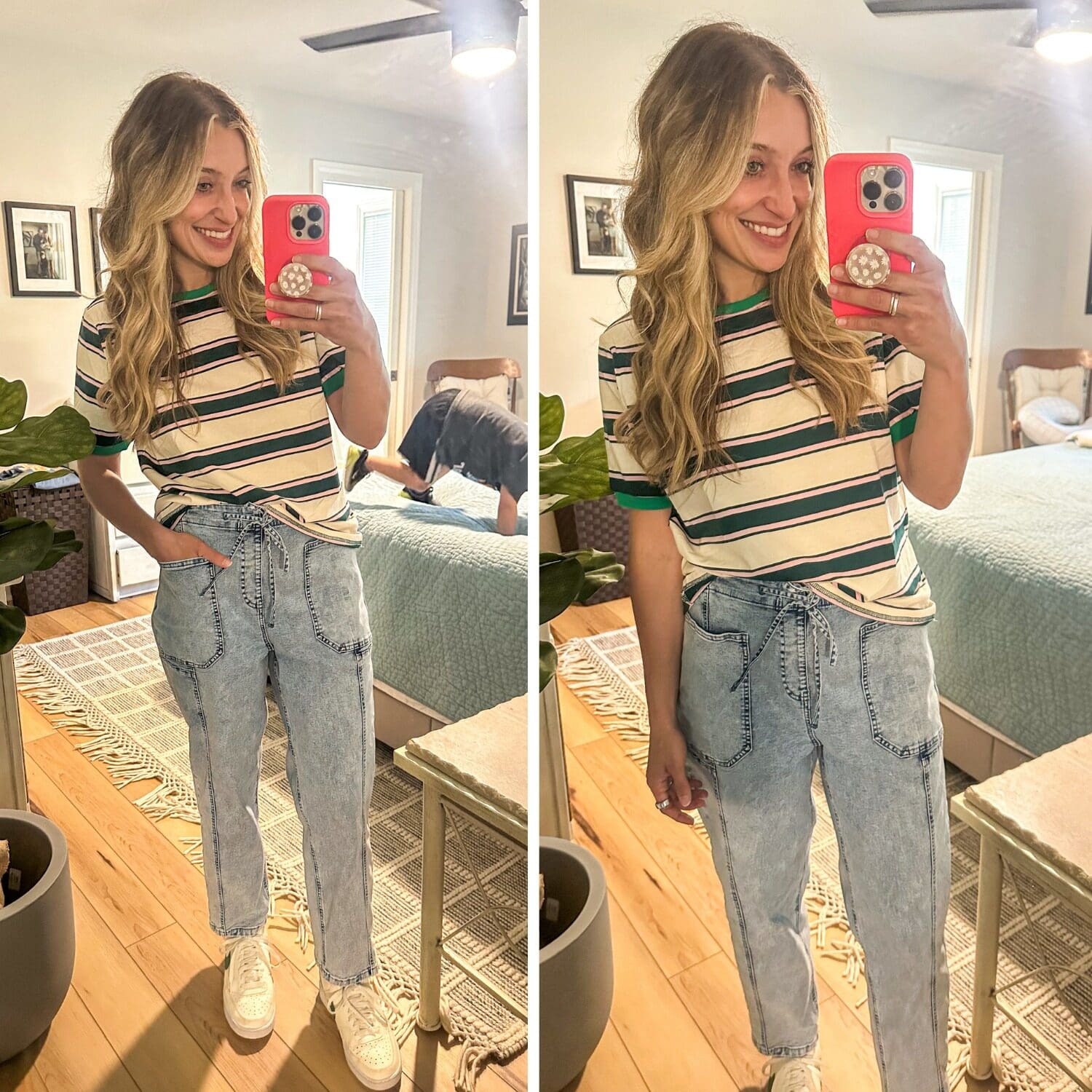 Jeans [size down, wearing color bay blue] // Tee [true to size, wearing dark green apricot in small]