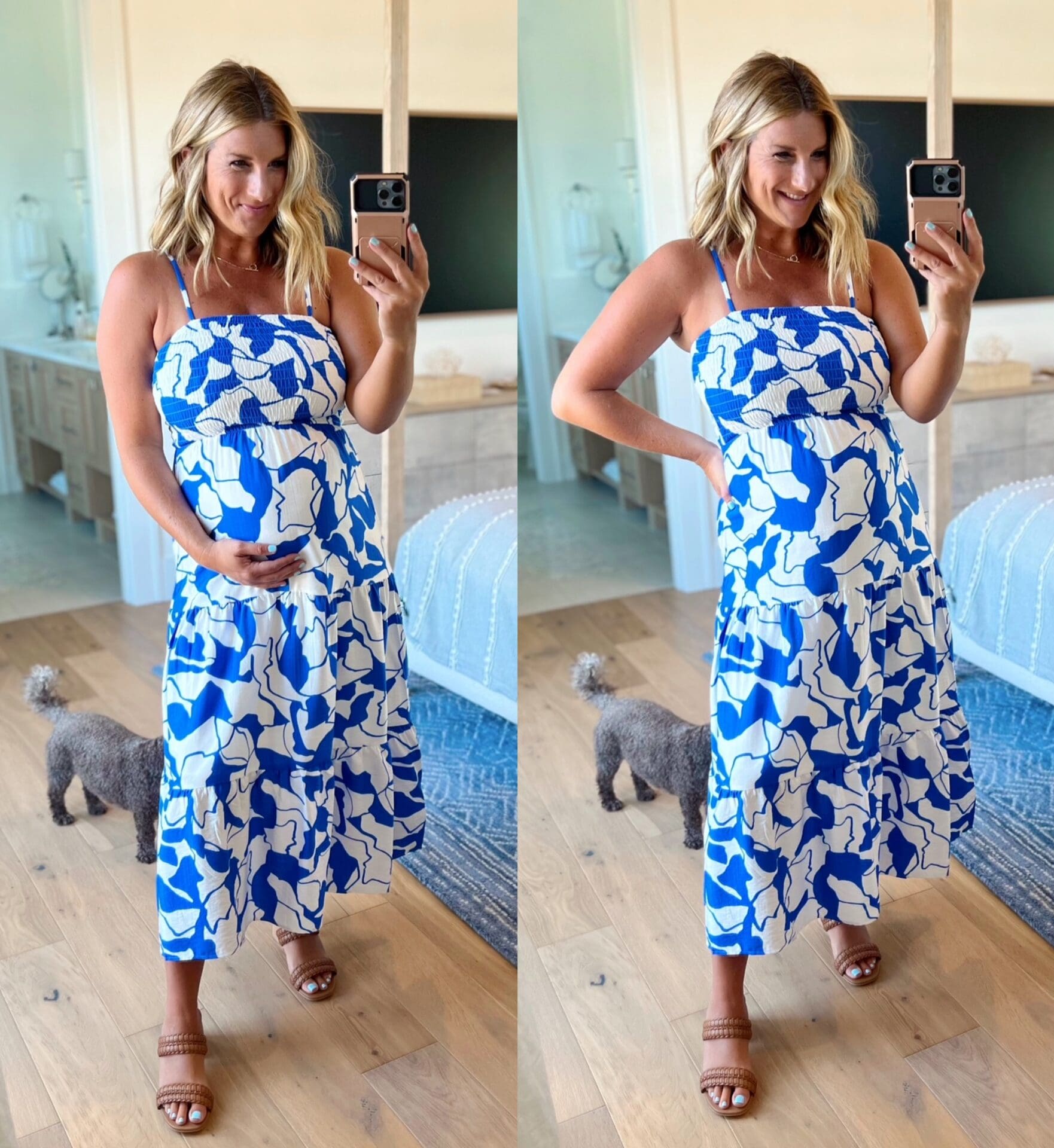 Dress [true to size, wearing in small in S-Blue White] // Sandals [true to size]
