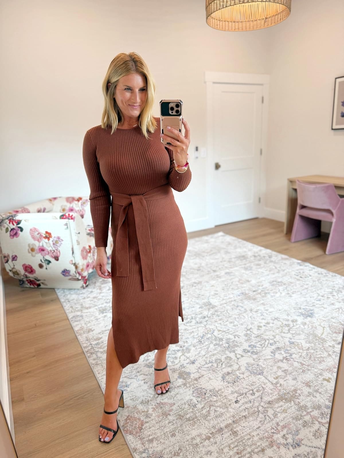 Sweater Dress [True to size, wearing in Medium in Solid Coffee!] // Similar Boots