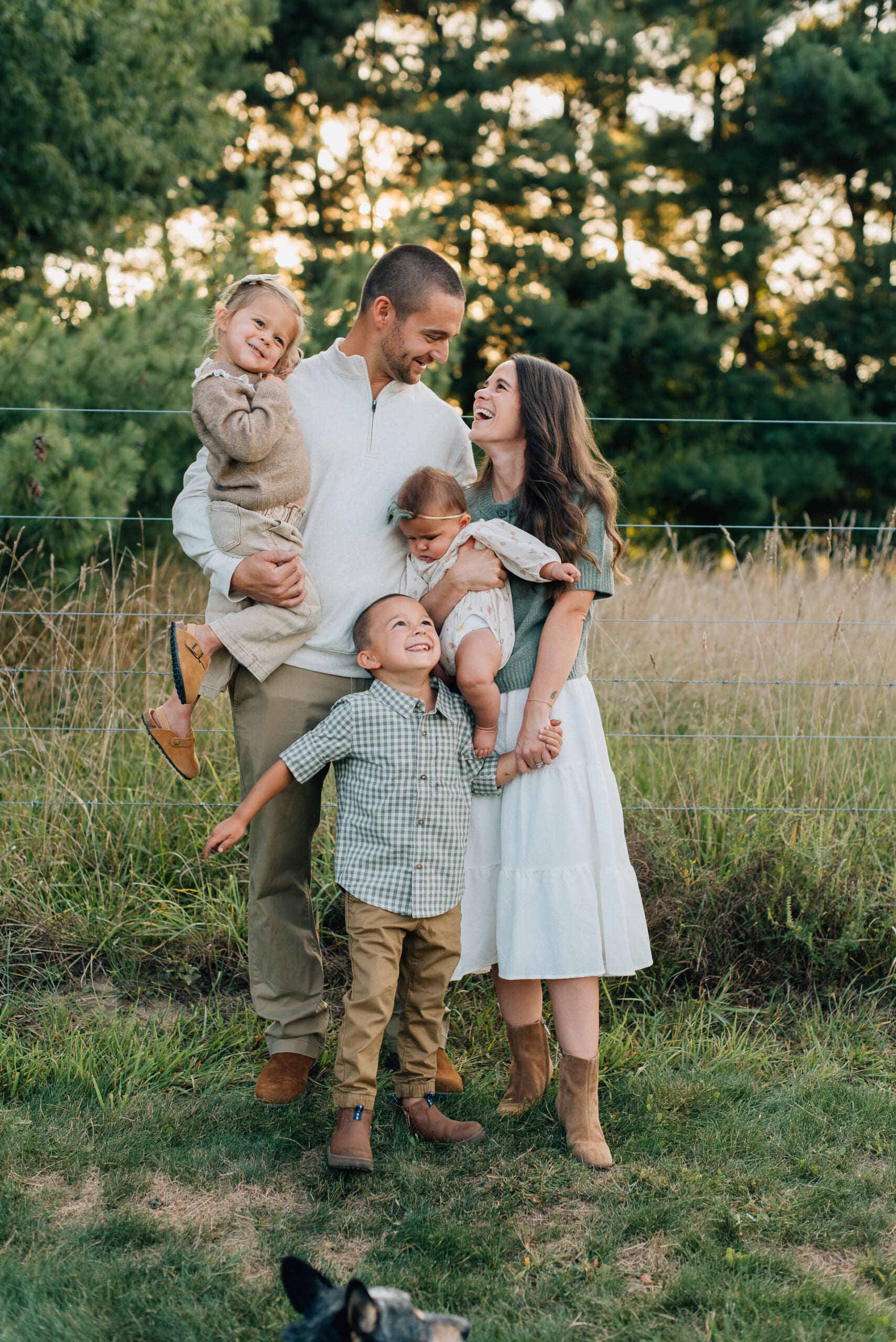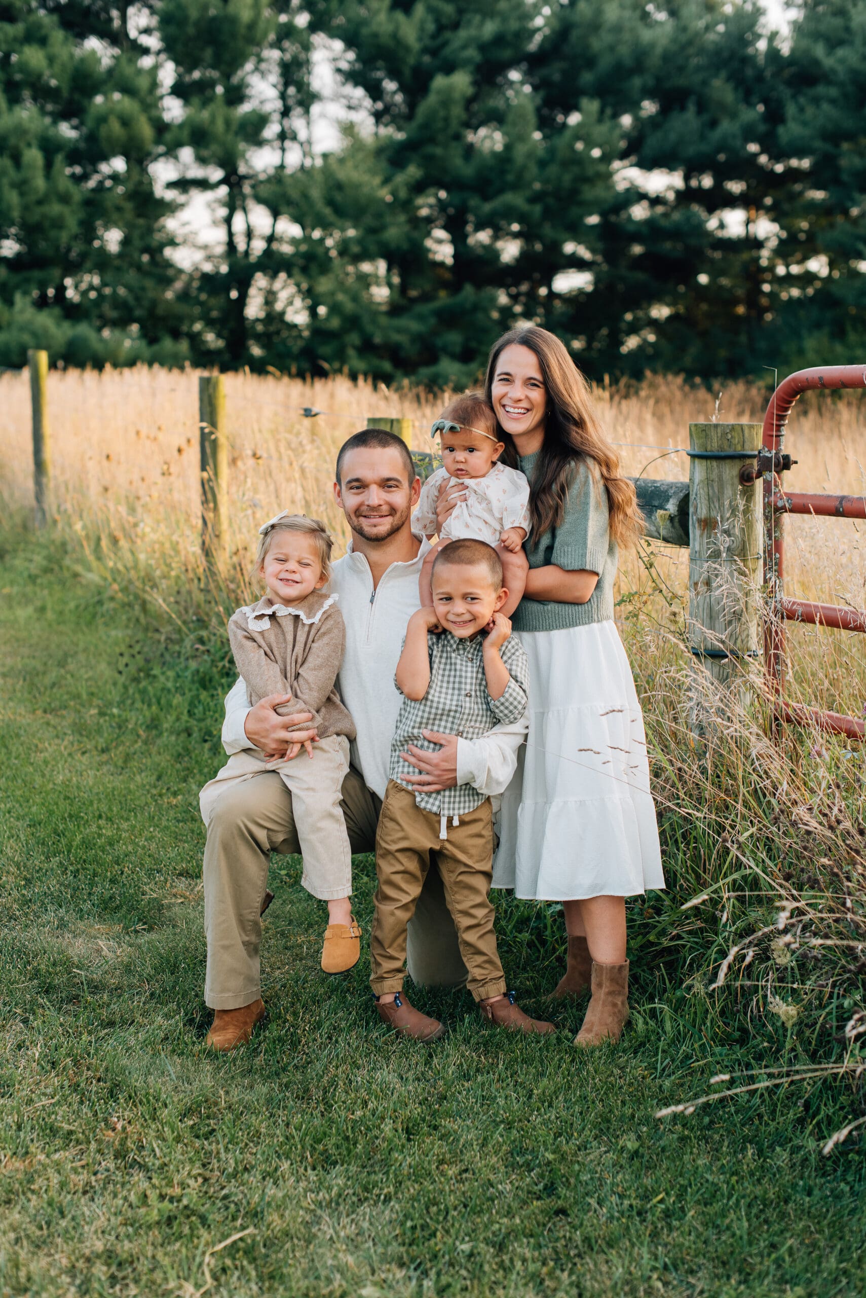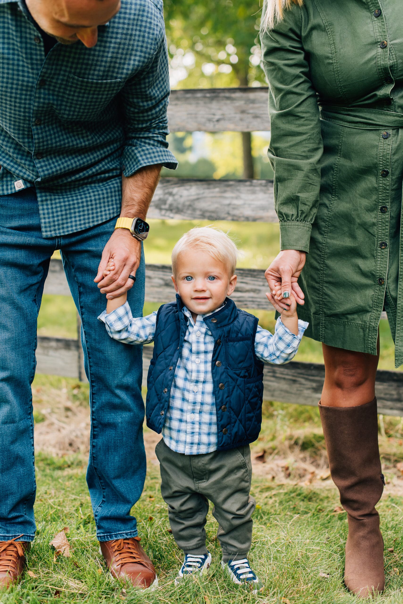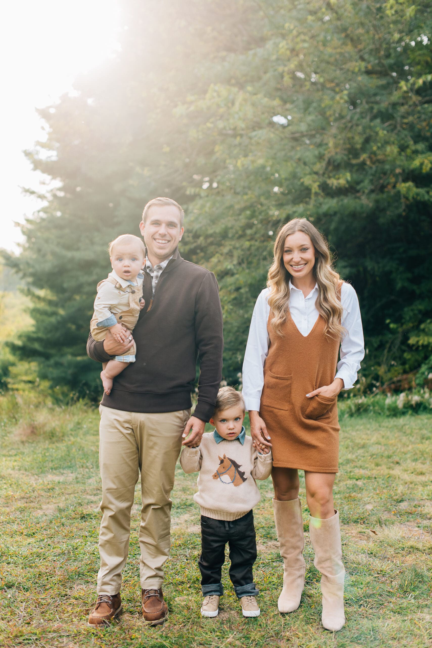 Katy’s Sweater Dress [true to size, wearing small coffee brown] // Katy’s Button Down Top [true to size, // Katy’s Boots [similar] // Zach’s Half Zip Pullover [true to size] // Zach’s Plaid Shirt [true to size] // Zach’s Khaki Pants [true to size] // Denver’s Horse Sweater [3T] // Denver’s Chambray Shirt [3T] // Denver’s Brown Pants [3T] // Denver’s Slip on shoes // Judson’s Acorn Button Down Onesie [8 months old] // Judson’s Overalls [8 months old]