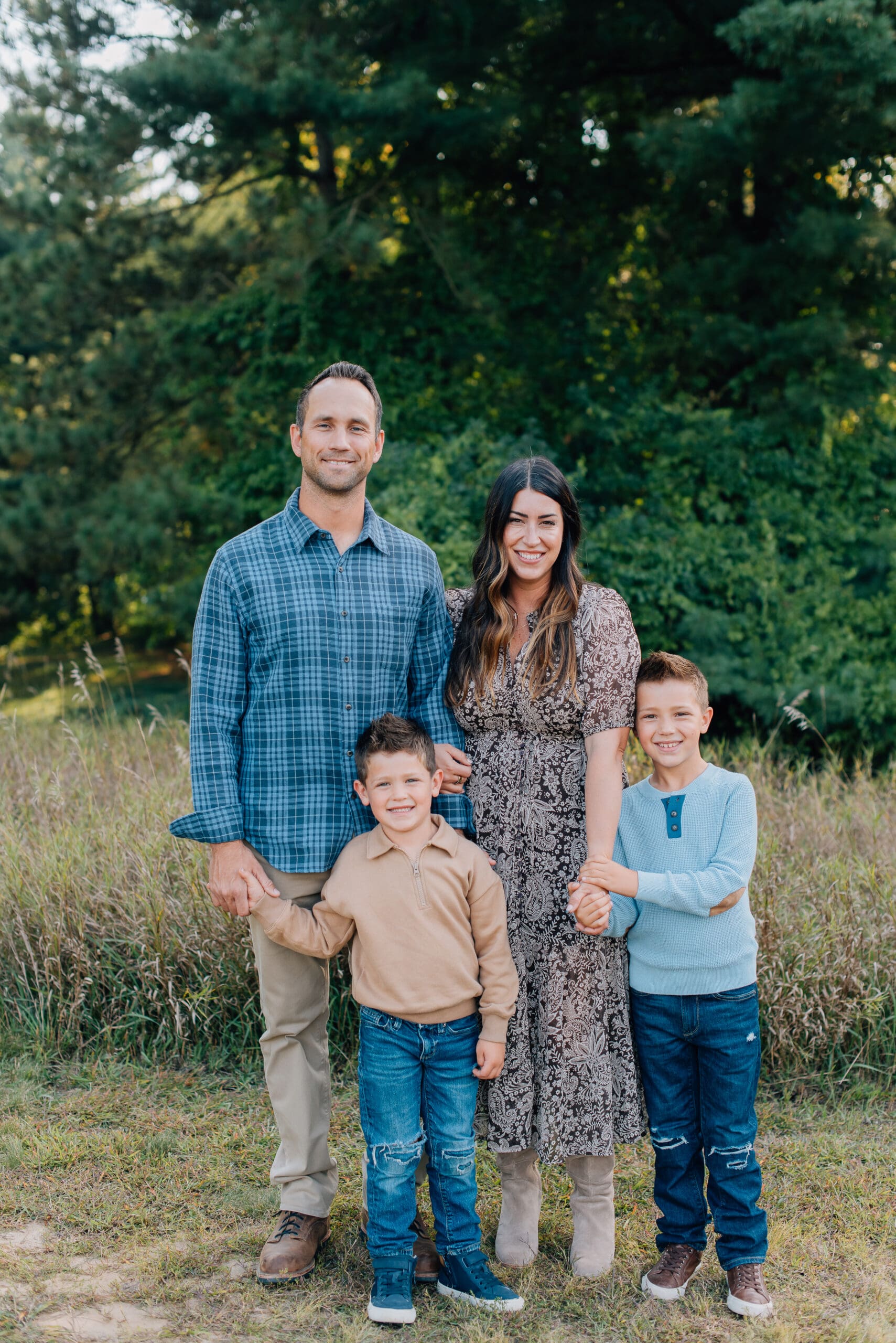 Lauren’s Dress [true to size, wearing in large] // Lauren’s Boots [true to size] // Eric’s Blue Plaid Shirt [true to size] // Eric’s Pants [true to size] // Briggs’s Blue Sweater // Briggs’s Jeans // Hayes’s Camel Sweatshirt // Hayes’s Jeans