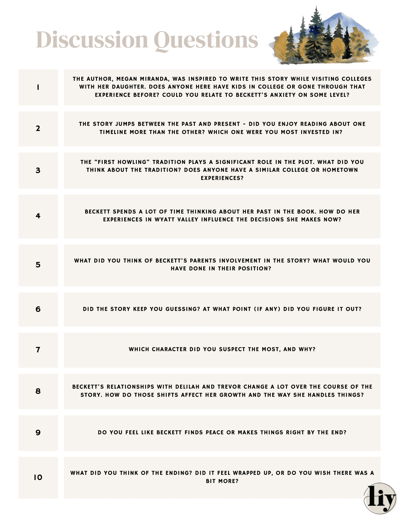 Be sure to officially join the LIY Reads group here and by entering your email address here! We’ll send you everything you need to know for future Book Club Discussions, directly to your inbox! Prefer the ‘Gram? You can follow along on Instagram at @LIY.Reads!