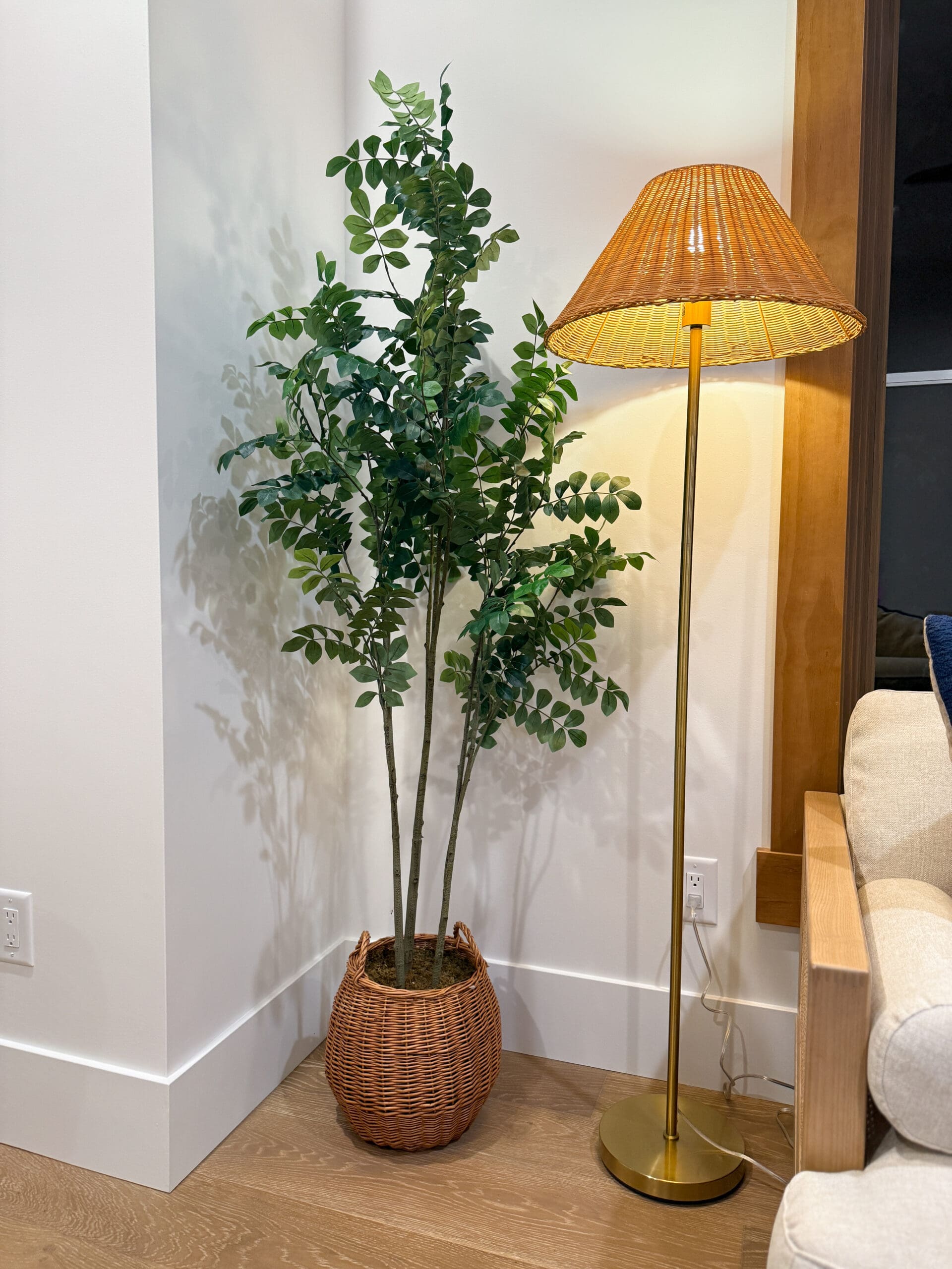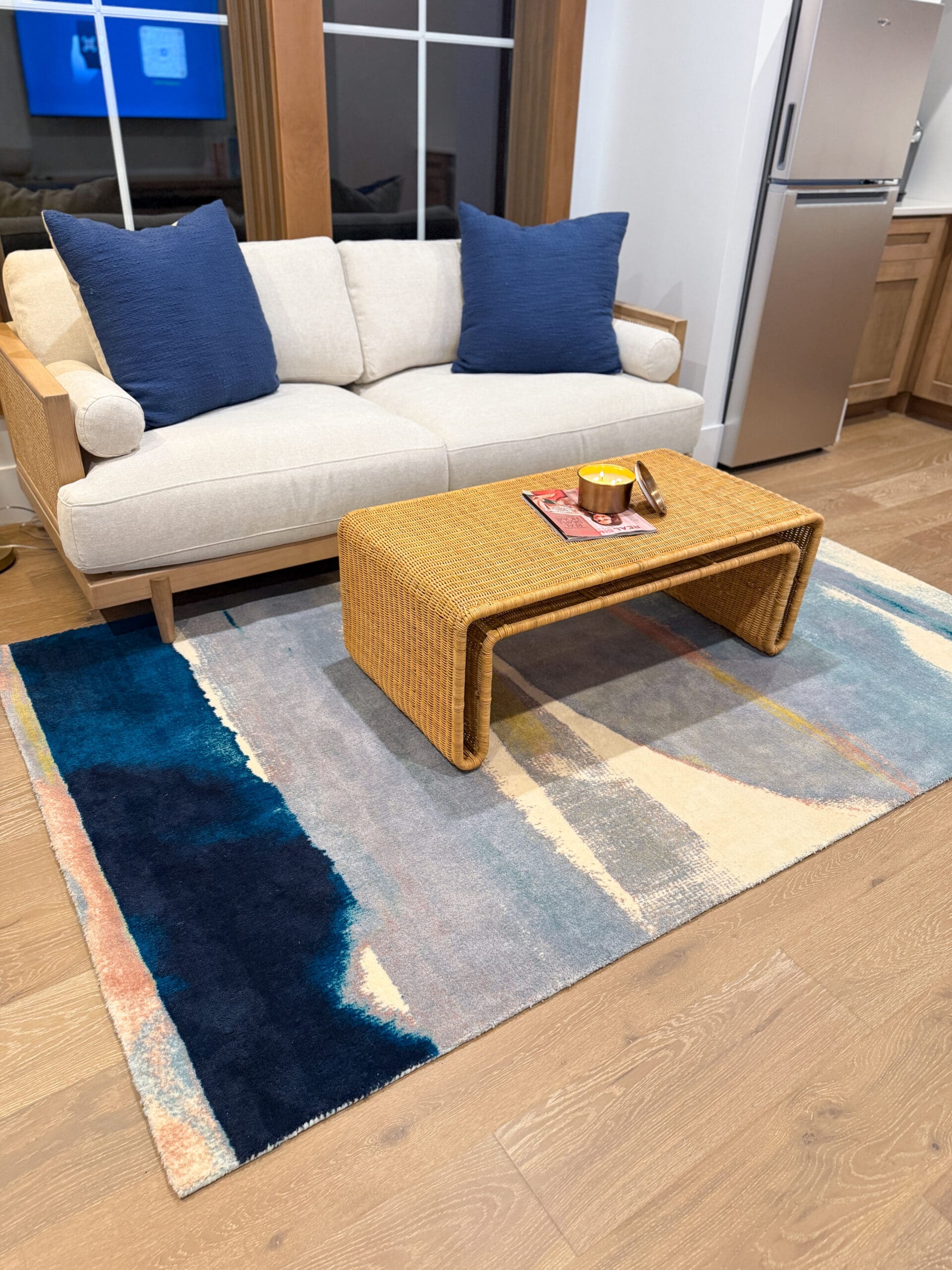 Rattan Coffee Table // Rug [5’x8′] // Floor Lamp