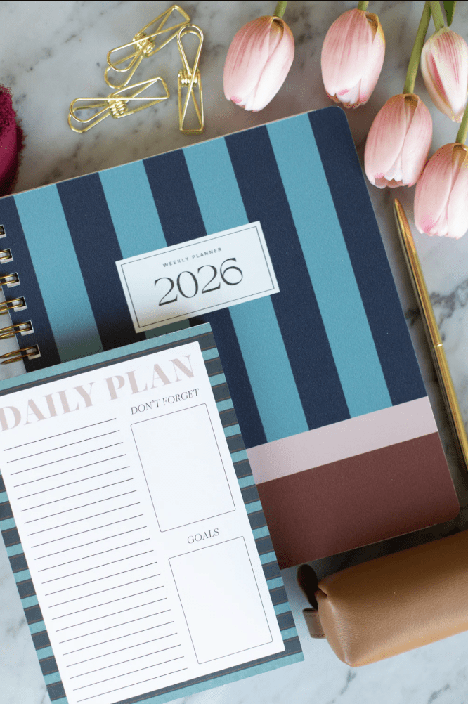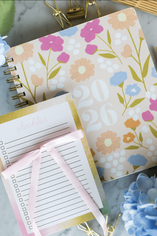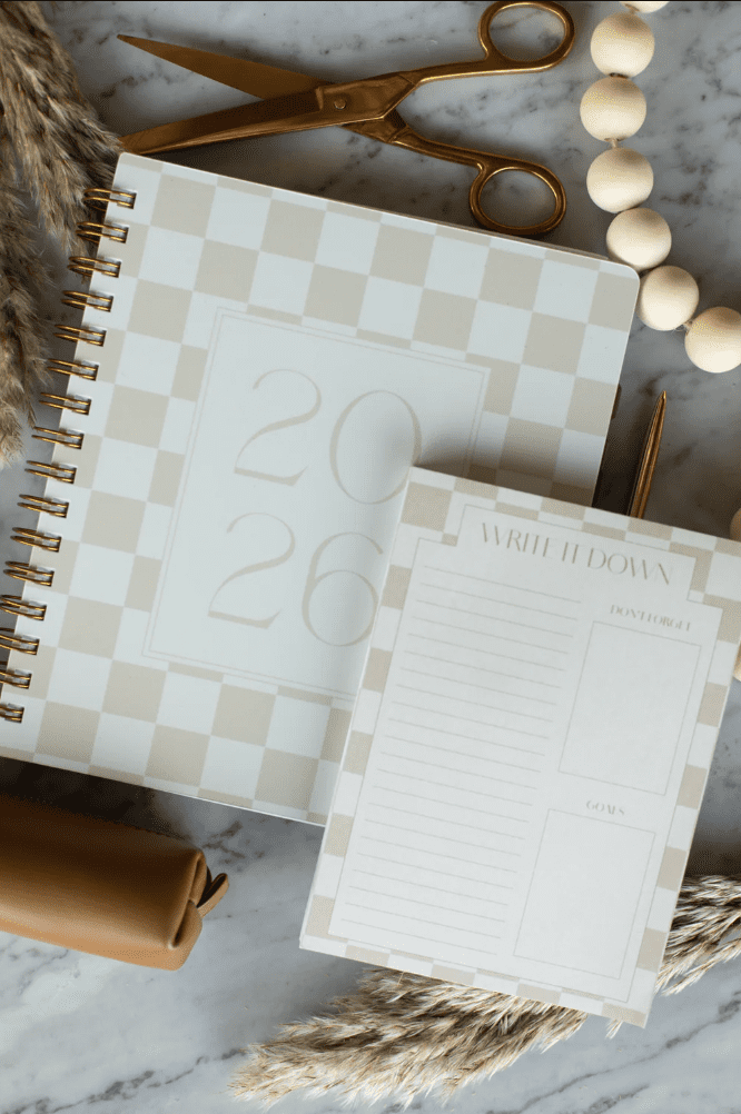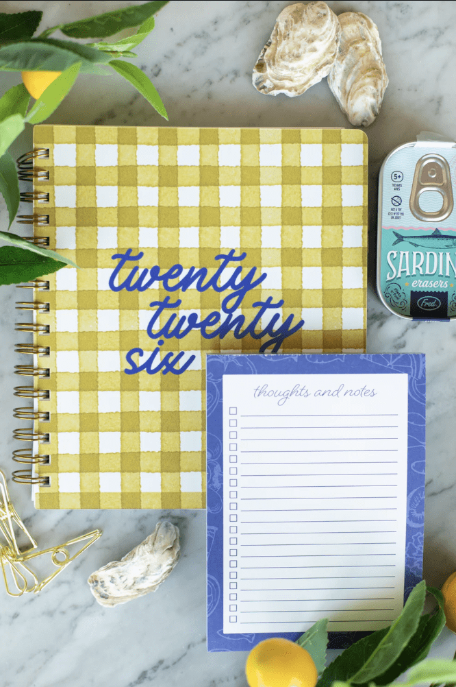 If there has ever been an introduction I’ve been dying to make, it’s this one right here, right now. Who may you be meeting you ask? The beauties and brains [and products] behind our new 2026 Life + Style planners and coordinating notepads! These products are such a passion of mine as I’ve been an avid planner user for years, and need all the notepads for quick ideas! I love taking everything swirling around in my brain [and believe me, there are a lot of swirls happening up there] and having a place to document it all. Whether it’s in the form of organizing my days and making sure I don’t miss a beat on my to-do list or an upcoming dentist appointment [let’s be real, I’d rather forget that] by jotting it all down in my Life + Style Planner or having a more spacious place to simply notice and write down what I’m grateful for. And there’s no better place to jot down a big idea when it hits, or maybe just a quick note for the babysitter than on a coordinating Life + Style notepad! Here at Living in Yellow, our mission is to be the best resource in the most fun way possible to women and I truly believe that these products do just that. Both of these products are 100% designed [from inside to out] by the Living in Yellow team and printed/manufactured right here in Elkhart, Indiana. A small-town product made by small-town girls to produce big-time living. I couldn’t love them more. Today I want to introduce you to all of the designs that were created for 2026. I can’t wait for you to receive your planner and/or notepad and experience the many positive benefits it will have in and on your life! Here’s to a year ahead of less canceled plans and more reasons to make ’em! Cheers friends!