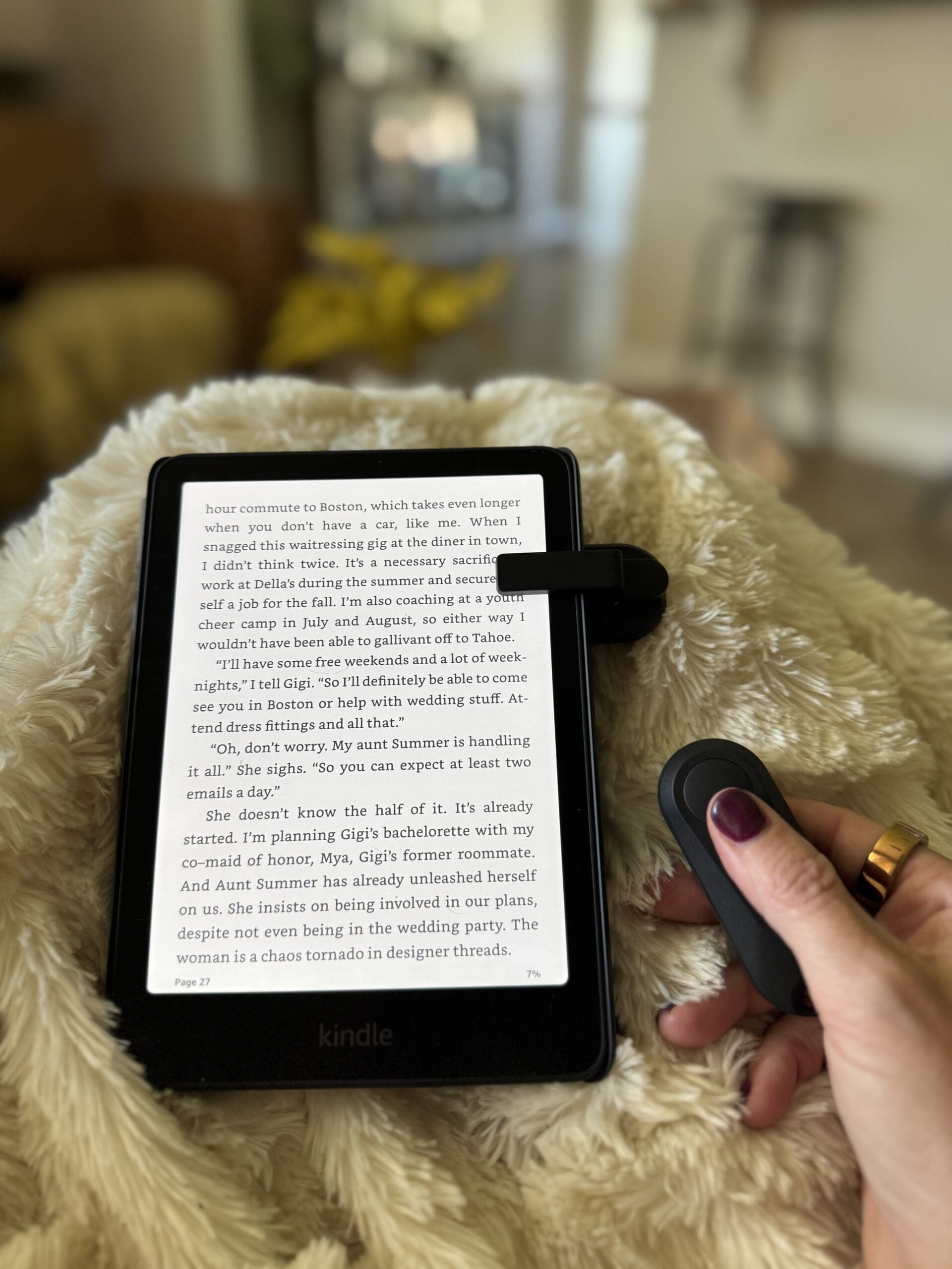 Just in time for the cold months – yay! This remote page turner is amazing… you’re able to keep your arms under the blankets & still read on all night long 🙂