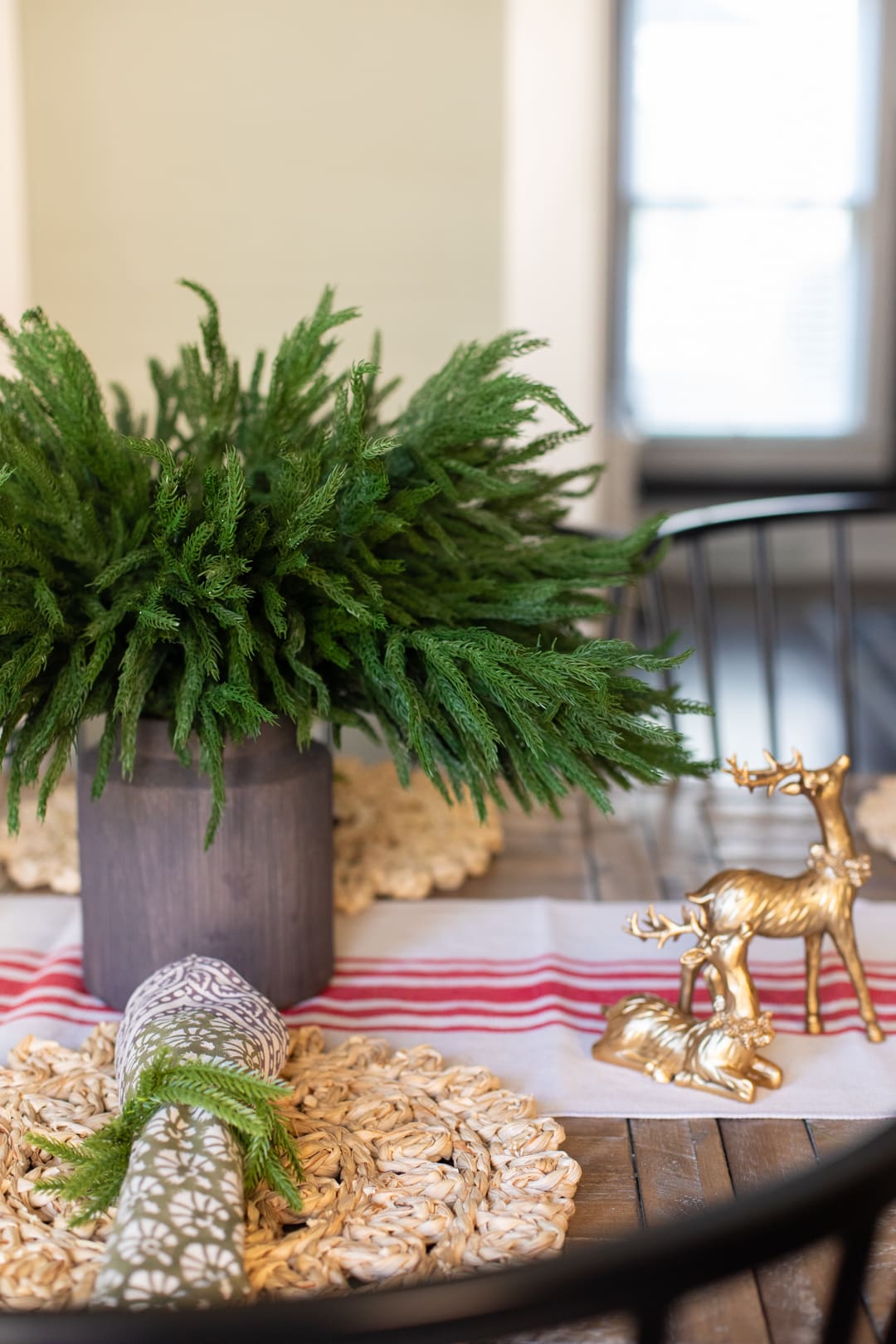 Gold Deer // Table Runner // Placemats // Greenery // Vase // Napkins // Wreath Napkin Rings