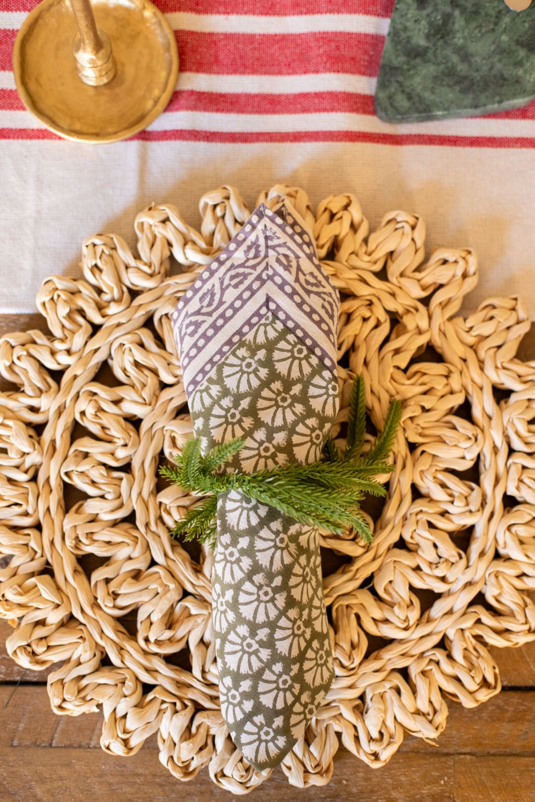 Gold Candle Holders // Table Runner // Placemats // Napkins // Wreath Napkin Rings