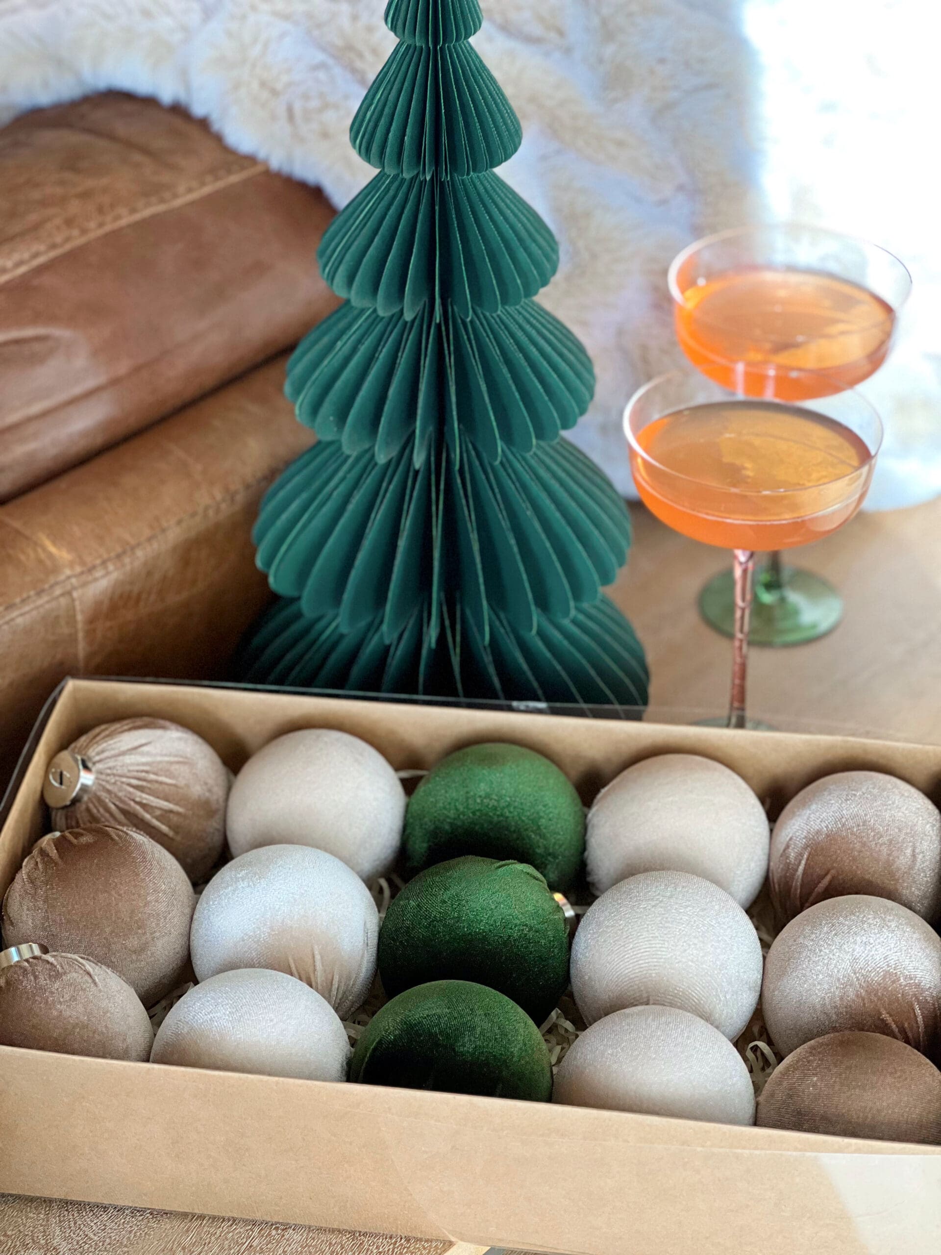 Velvet Ornaments // Magnetic Paper Tree // Similar Coupe Glasses