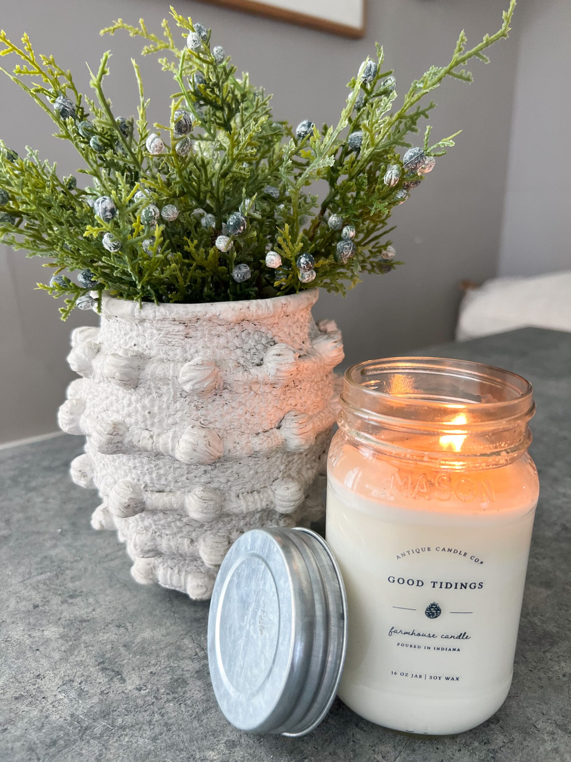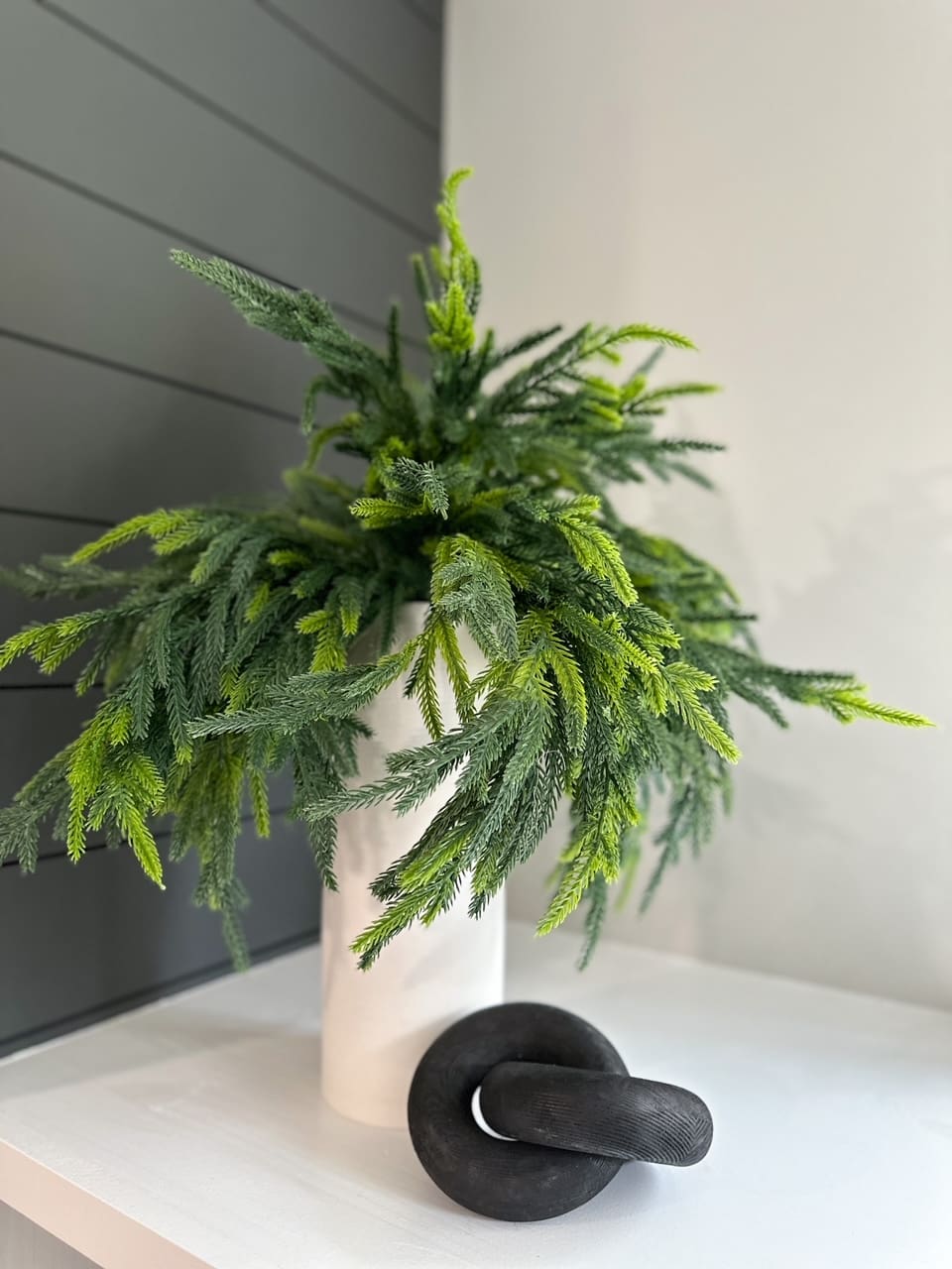 Faux Greenery Sprigs [6 Sprays 10″ Each] // Vase [XS size] // Candle