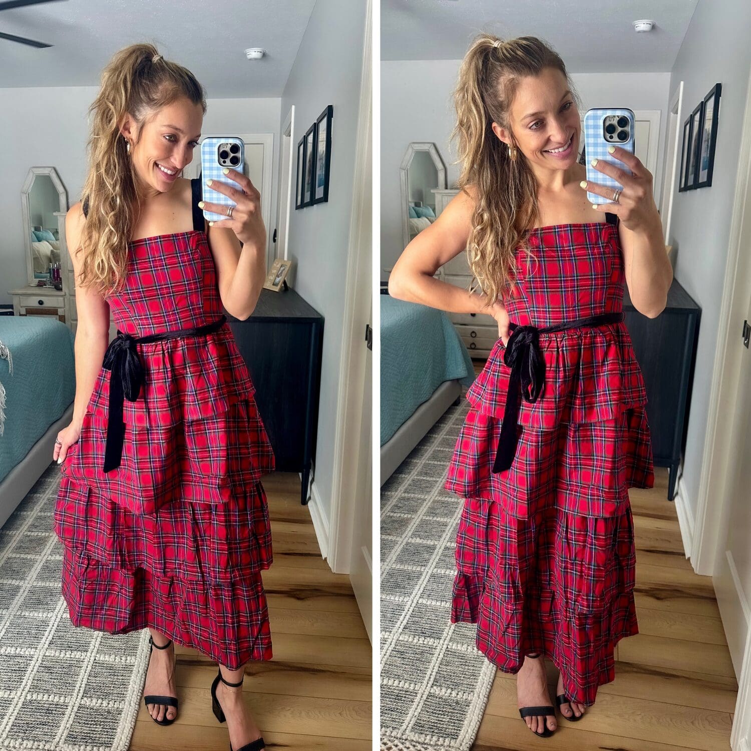 Catalina Mixed Plaid Midi Dress [size down if in between, Use code YELLOW15 to save!] // Heels [true to size]