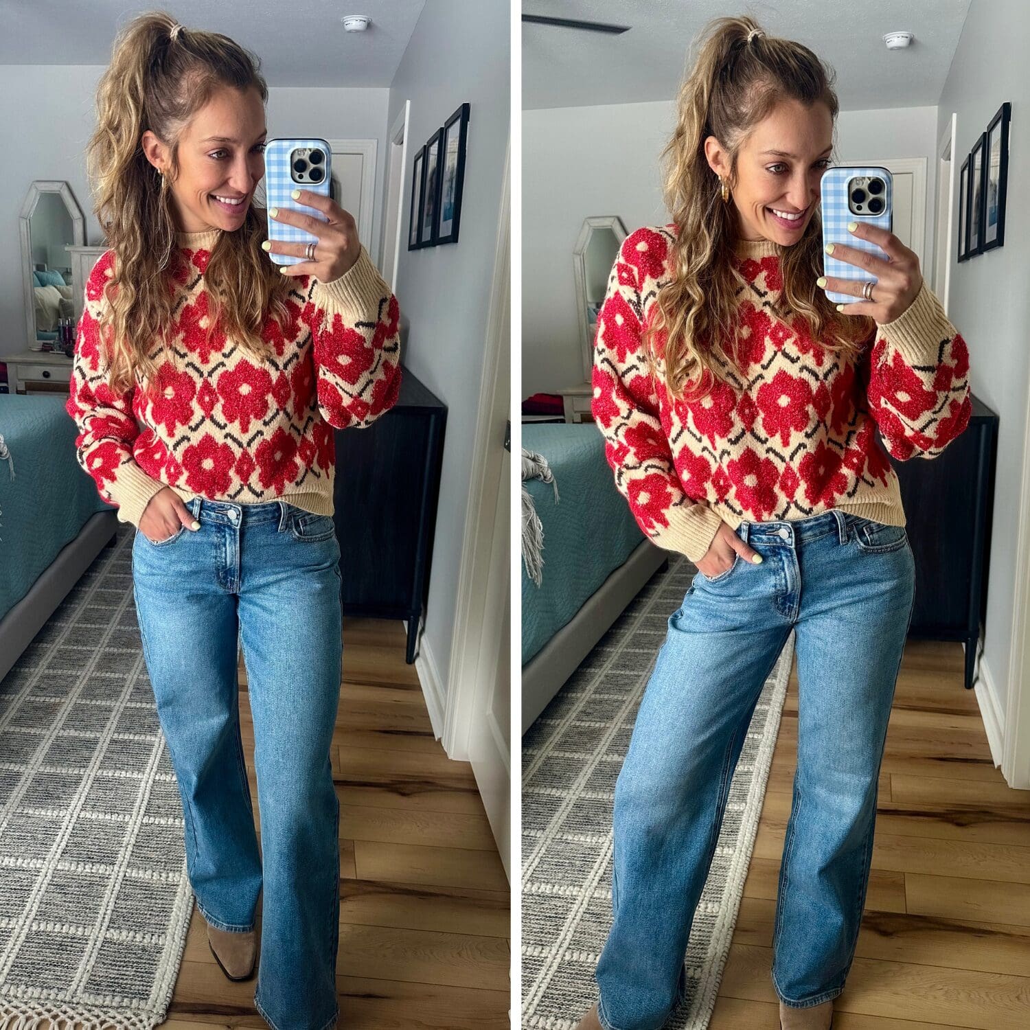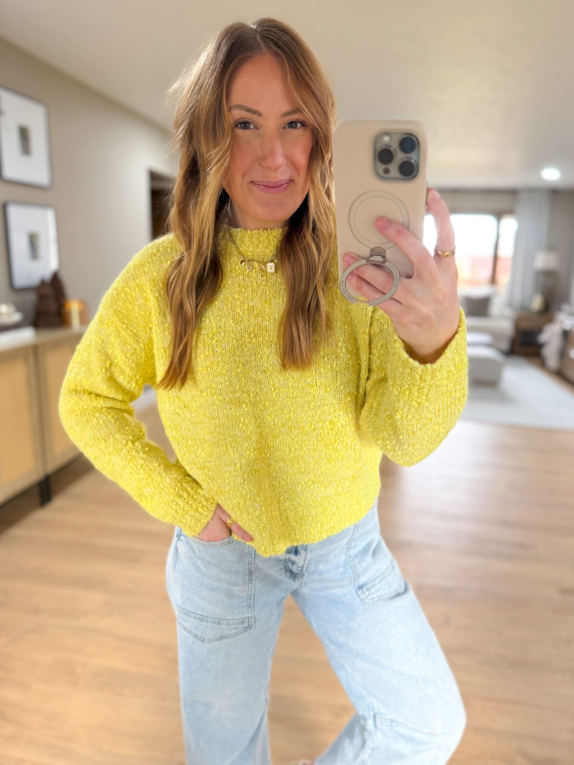 Sweater [true to size, Use code YELLOW15 to save!] // Jeans [size down, Use code YELLOW15 to save!] // Similar Boots