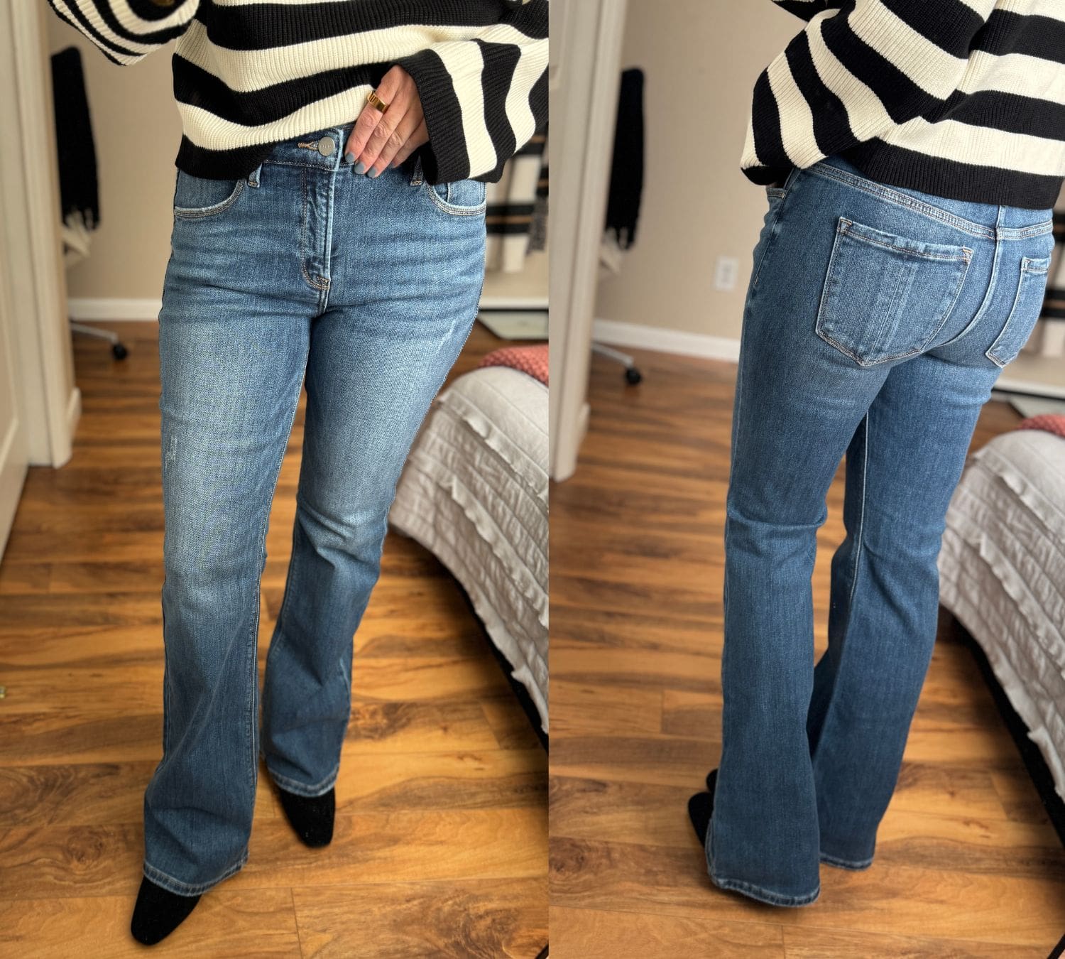 Sweater [true to size, wearing in Small] // Jeans [size down one] // Heels [true to size]