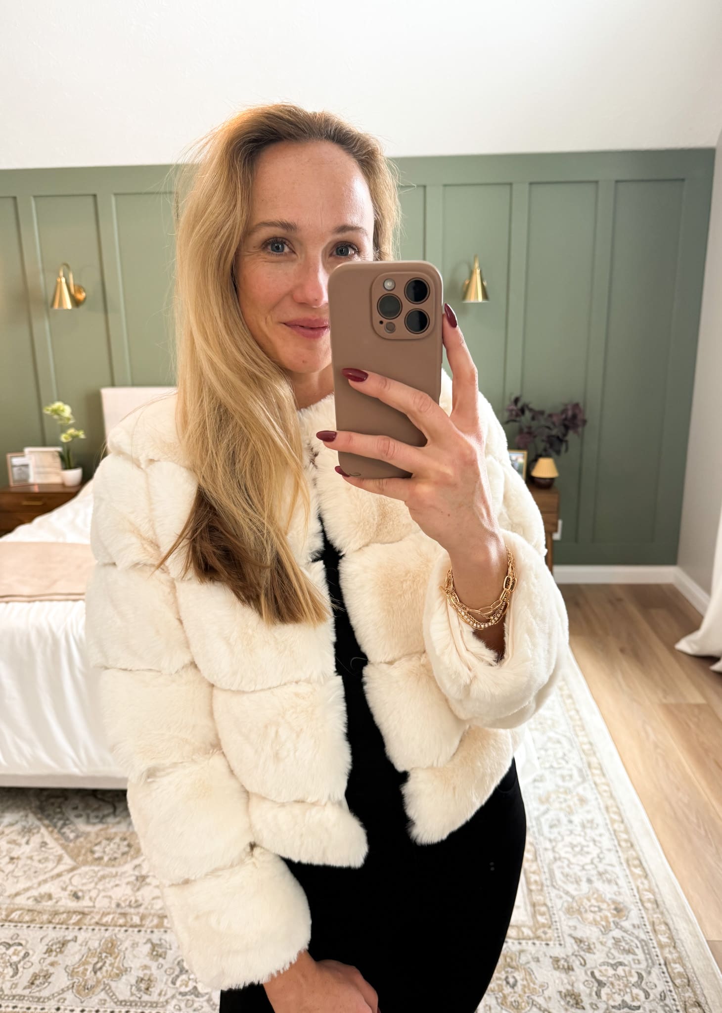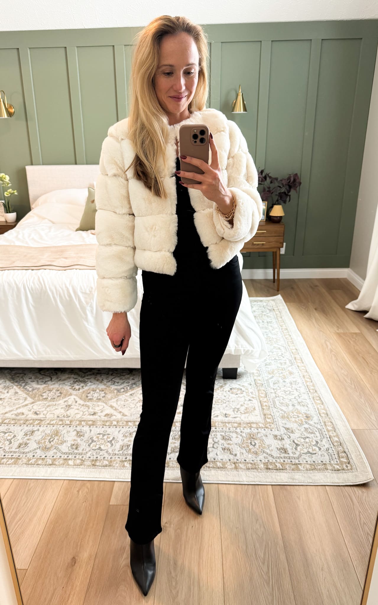 Faux Fur Jacket [tts, wearing small] // Natalie Jeans by KUT from the Kloth [size down, wearing 0] // Emery Black Boots [tts] // Diana Bracelet Set