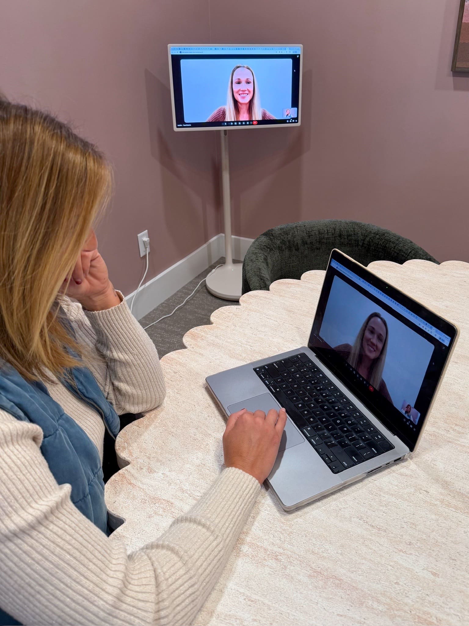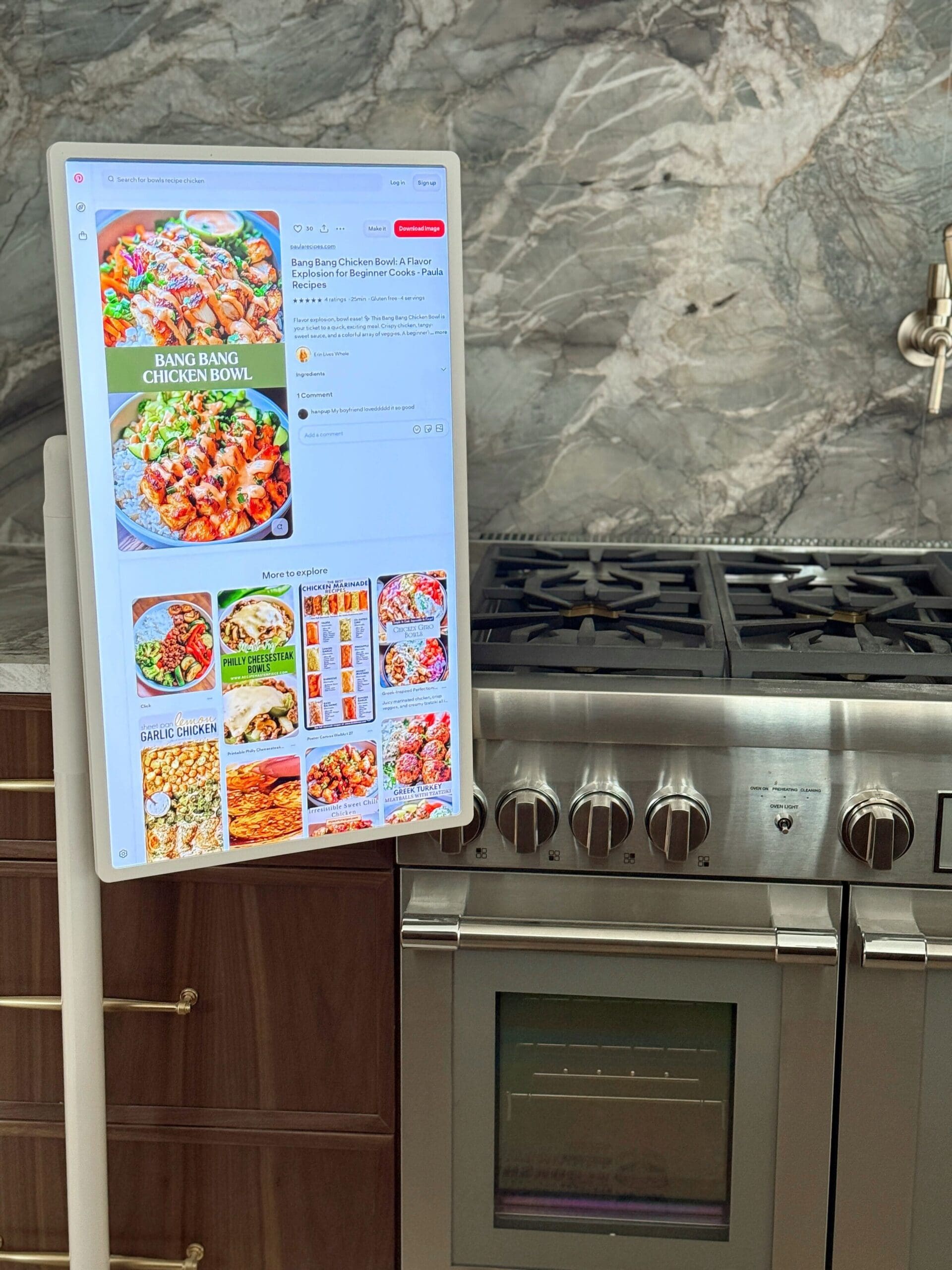 Imagine rolling the screen in beside your island, next to your coffee station, and pulling up YouTube, TikTok, or a cooking class while you chop and sauté. No more awkward tablet balancing, no more pausing your phone every 30 seconds. I love that it is a touchscreen, which makes browsing Pinterest for tonight’s dinner recipe a breeze! Bonus: The StanbyME can sit and swivel so you have the perfect angle as you work!