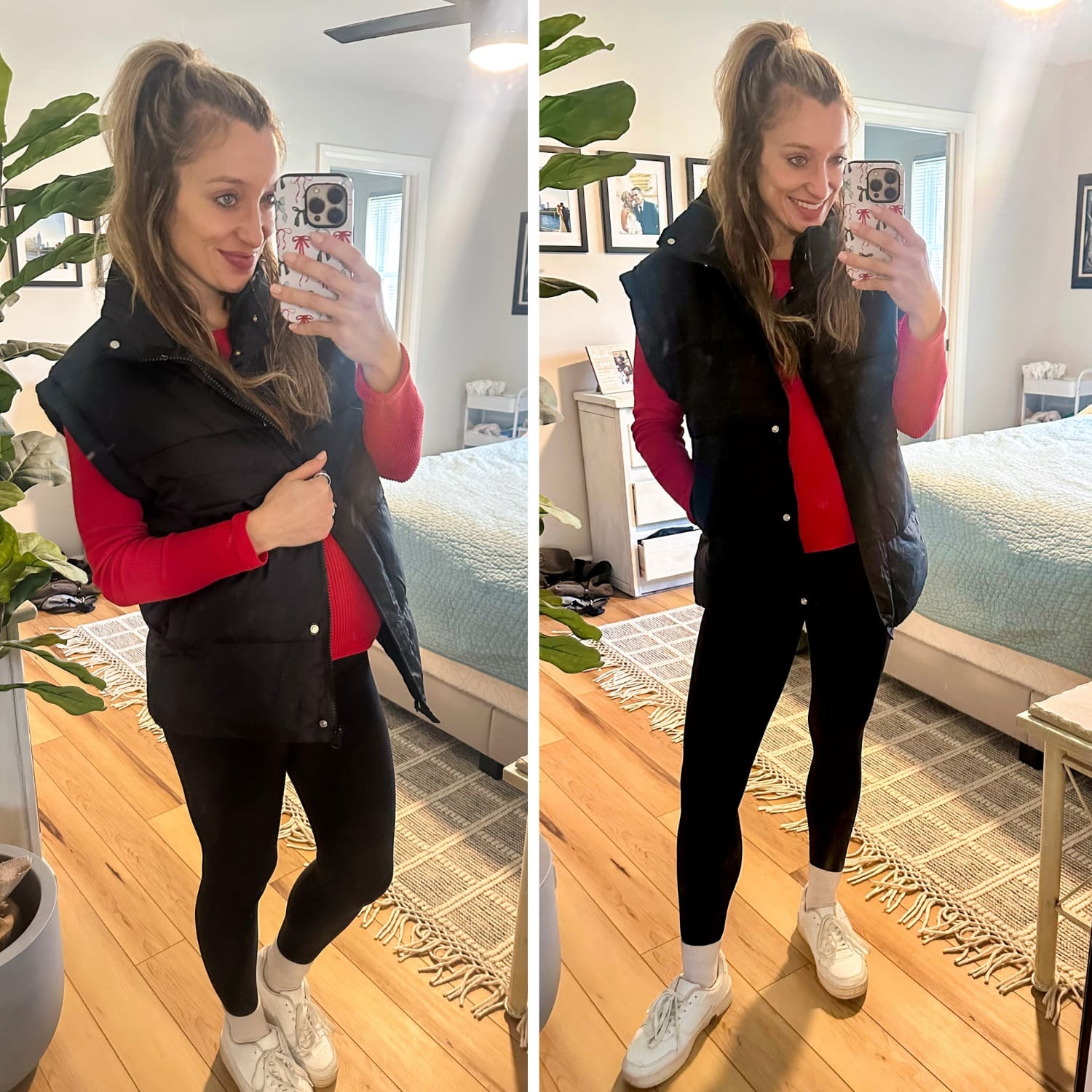 Vest [size down if in between, wearing in Small] // Long Sleeve [true to size, wearing in Medium] // Leggings [true to size] // Similar Sneakers