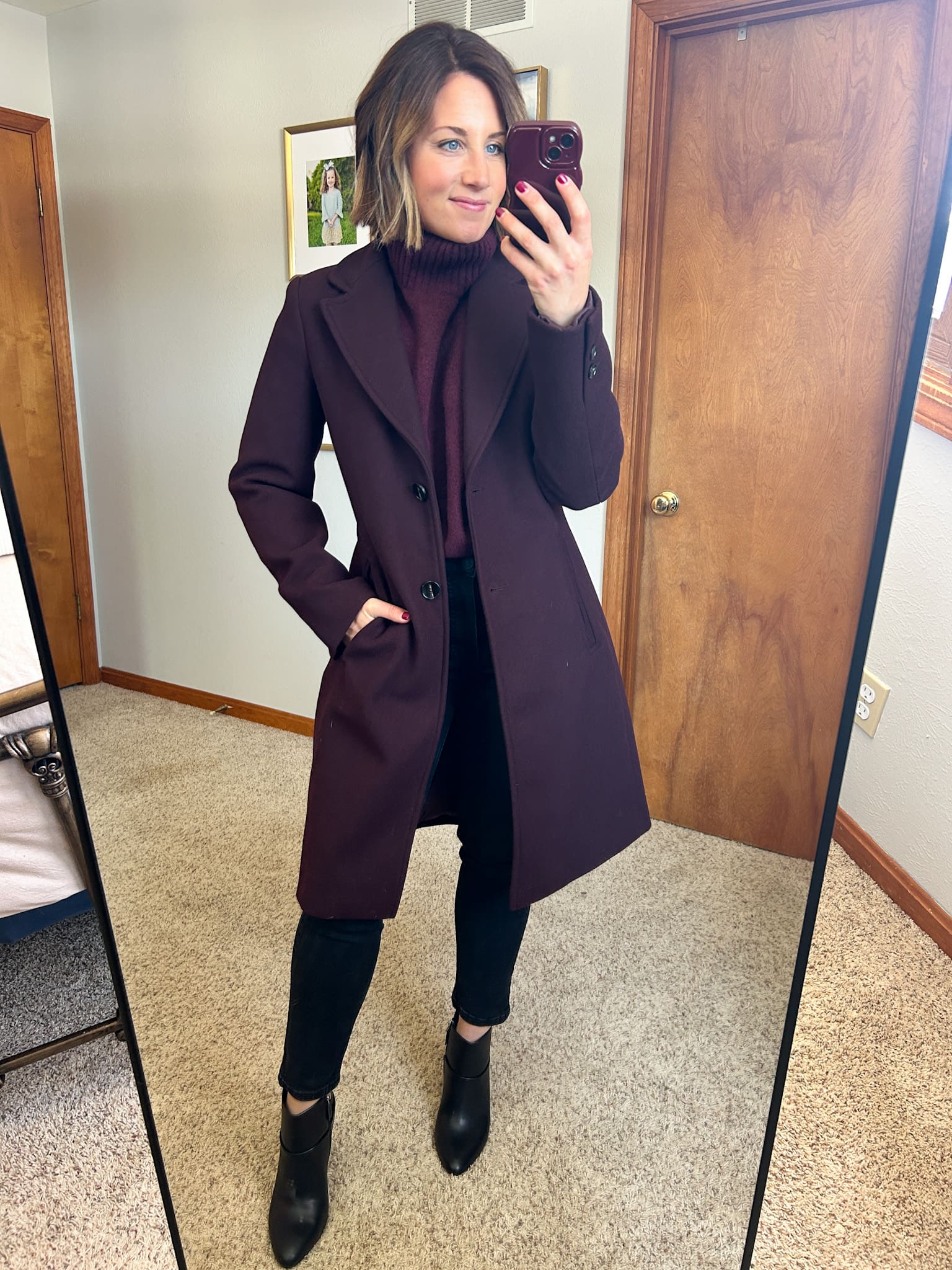 Zara Dress Coat [size up if in between, wearing in Small] // Sweater [true to size] // Jeans [size down] // Similar Booties