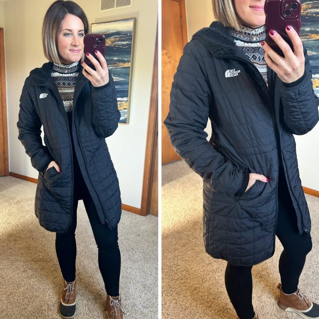 The North Face Insulated Jacket [size down, wearing in Small but would prefer XS] // Top [size up, wearing in Small] // Boots [true to size]