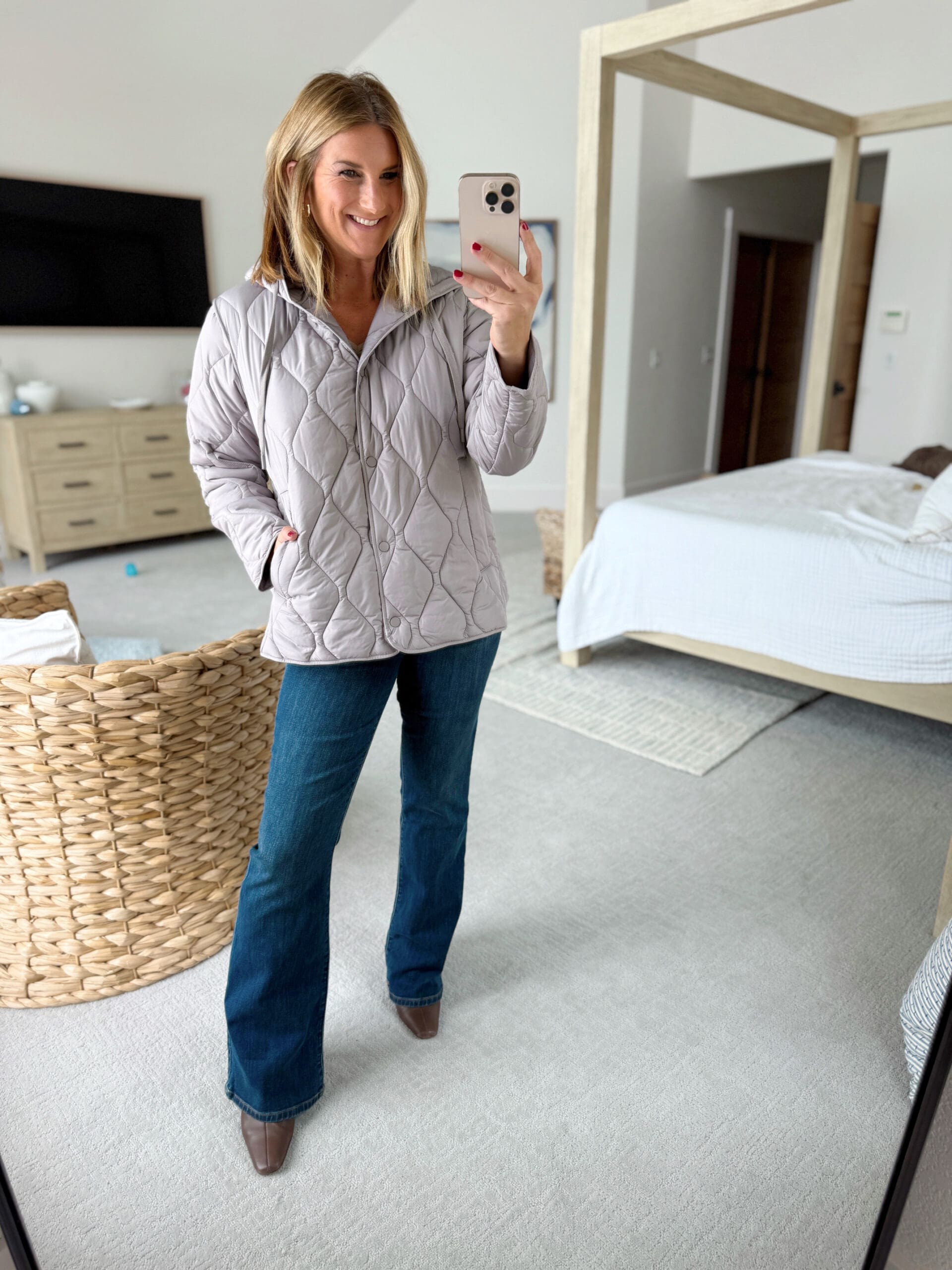 Water-Resistant Puffer Jacket [true to size] // Jeans [size down] // Similar Booties