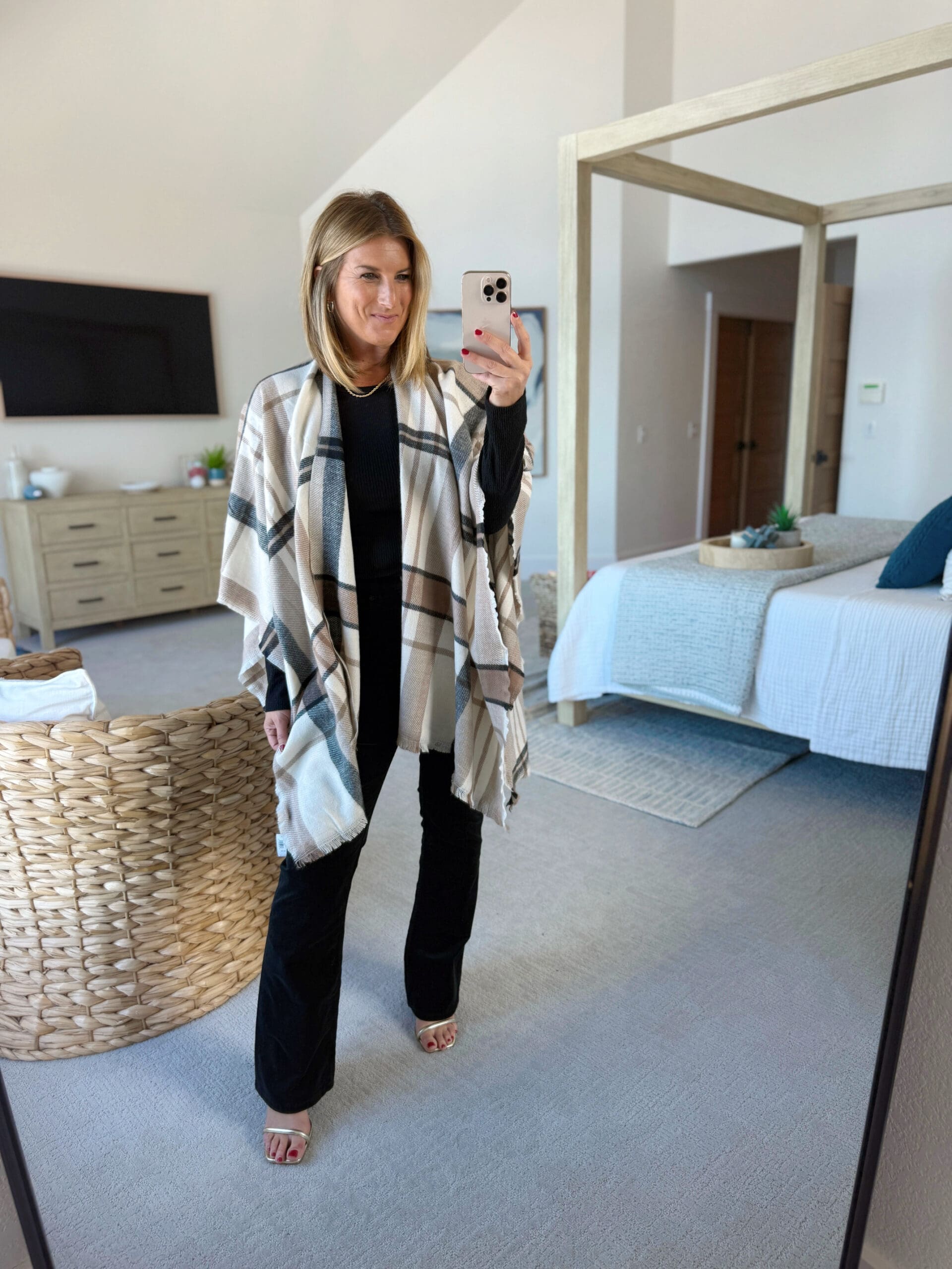 Fringe Poncho // Long Sleeve [true to size, wearing in Medium] // Pants [true to size] // Heels [true to size]