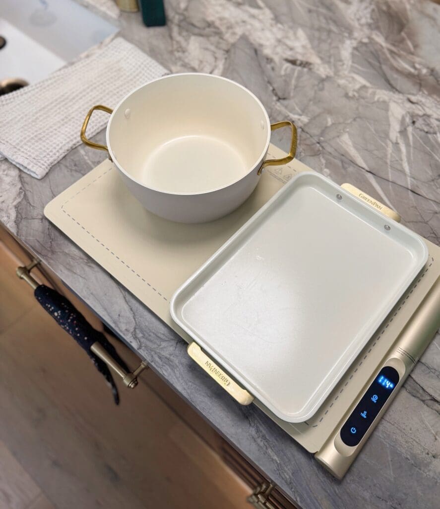 We recently purchased this GreenPan cookware set after moving into our new house and realizing our previous pots and pans were hitting their expiration date. I had heard great things about how these pans have held up for others and I love that they are non-stick and non-toxic. Bonus: they look really nice on your stovetop!