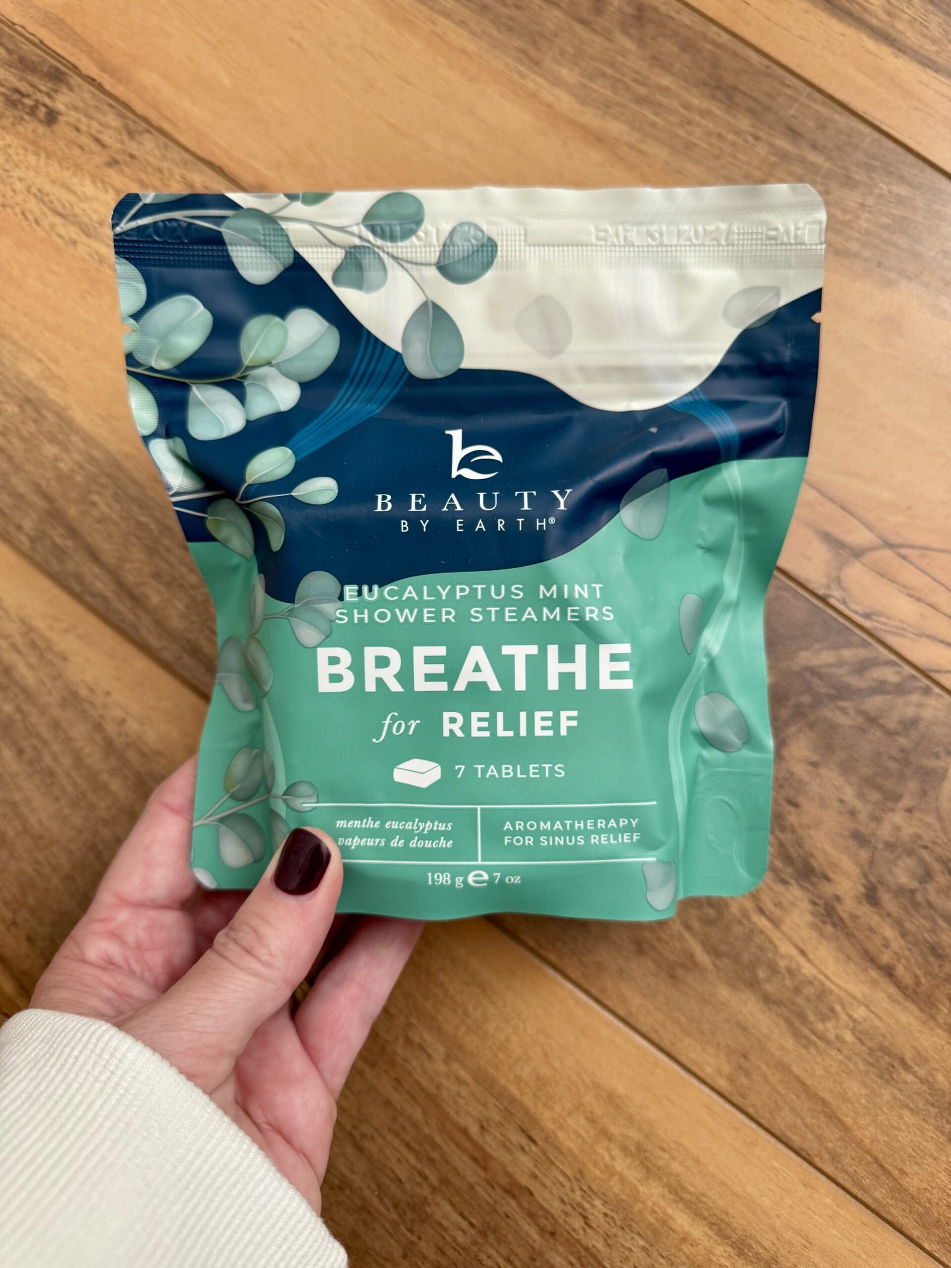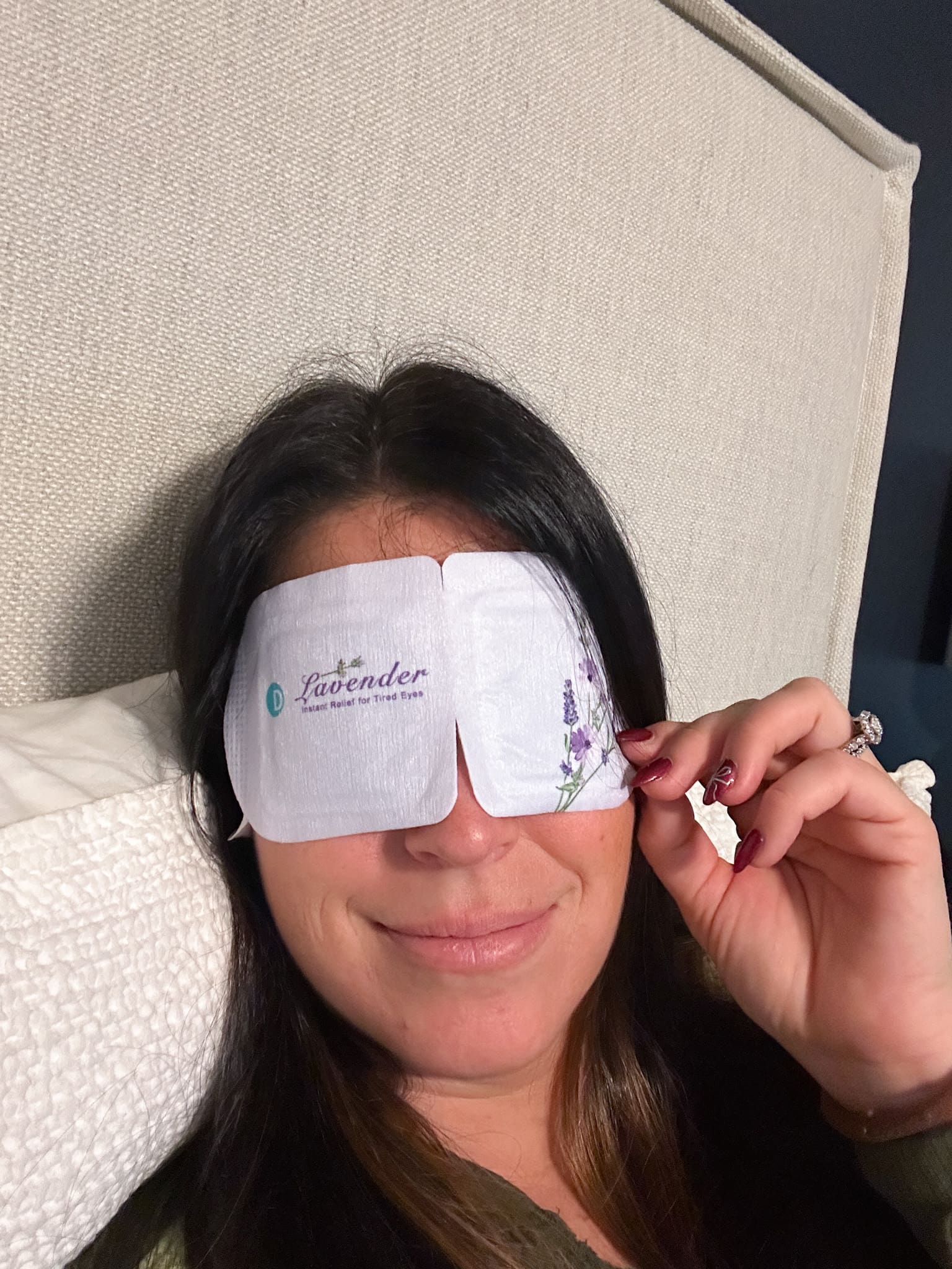 Honestly, looks like a pad on my face! But these steamed lavender eye masks have been a nice treat while I’ve been laid up in bed the last 24 hours with sickness! Within a few minutes of opening them the heat starts and it feels like a little facial mask! Great for tired or puffy eyes!