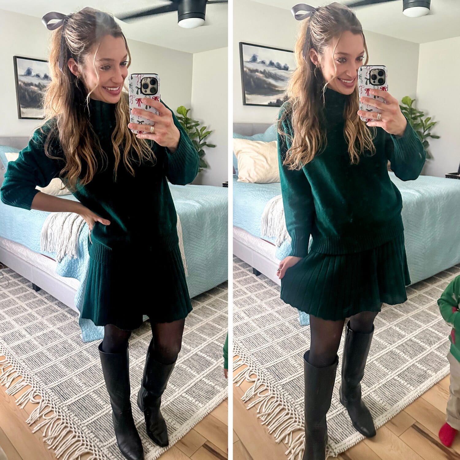 2 Piece Sweater/Skirt Set [size down] // 2 Pack Tights [true to size] // Boots [true to size]