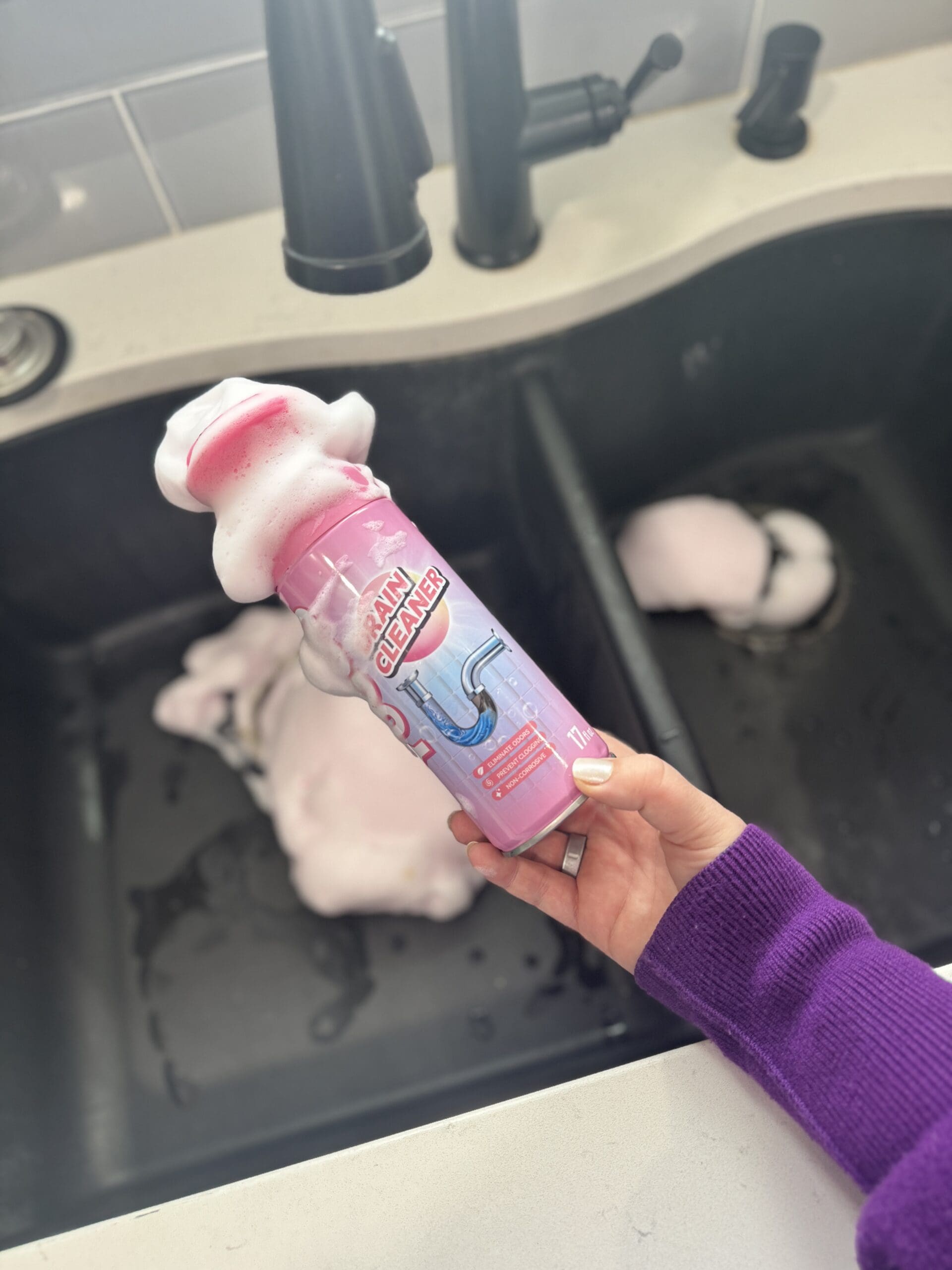 My first purchase of the year is half a win, and half not! In the kitchen, I put it in the left side of my sink, and it came out on the right side with some debris. The drain smells fresh – calling it a win for the kitchen! Unfortunately, my bathroom sink is too short and the can doesn’t fit underneath the faucet so I can’t create the required seal to use it. This doesn’t work for my bathroom, but if you have taller faucets or deeper sinks than I do, it might work for you!