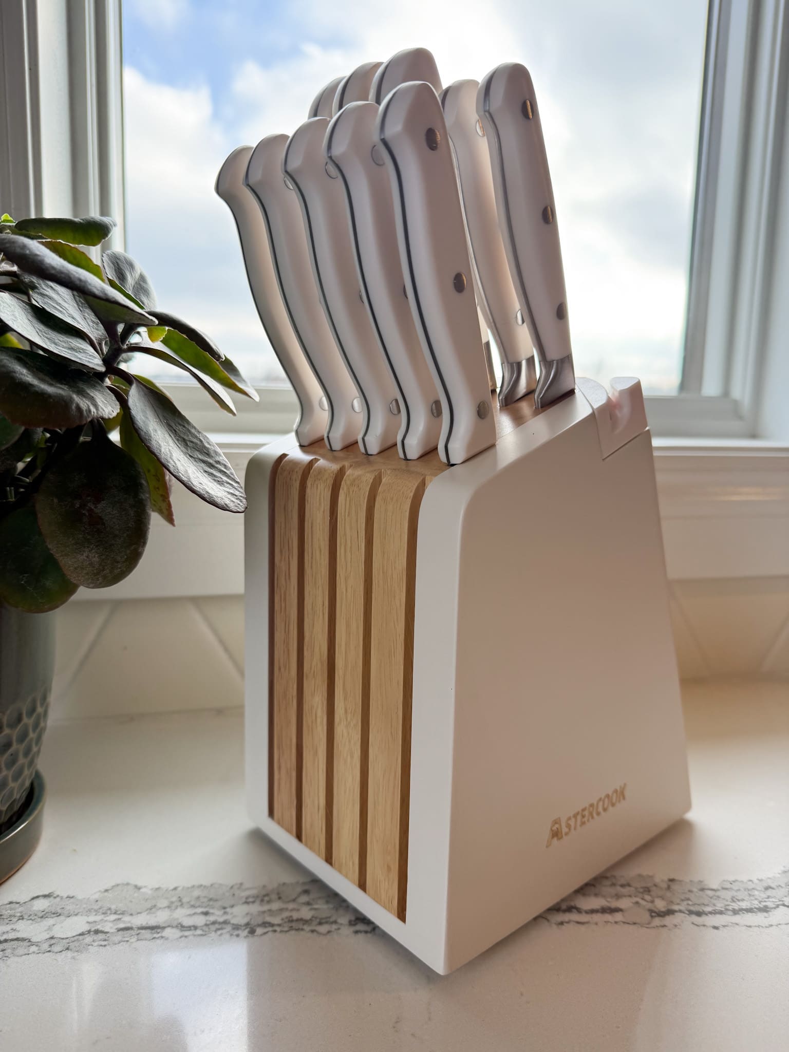 I have an a la carte knife set from this brand and this year decided to buy an entire set. I love the quality of these knives for an affordable price!