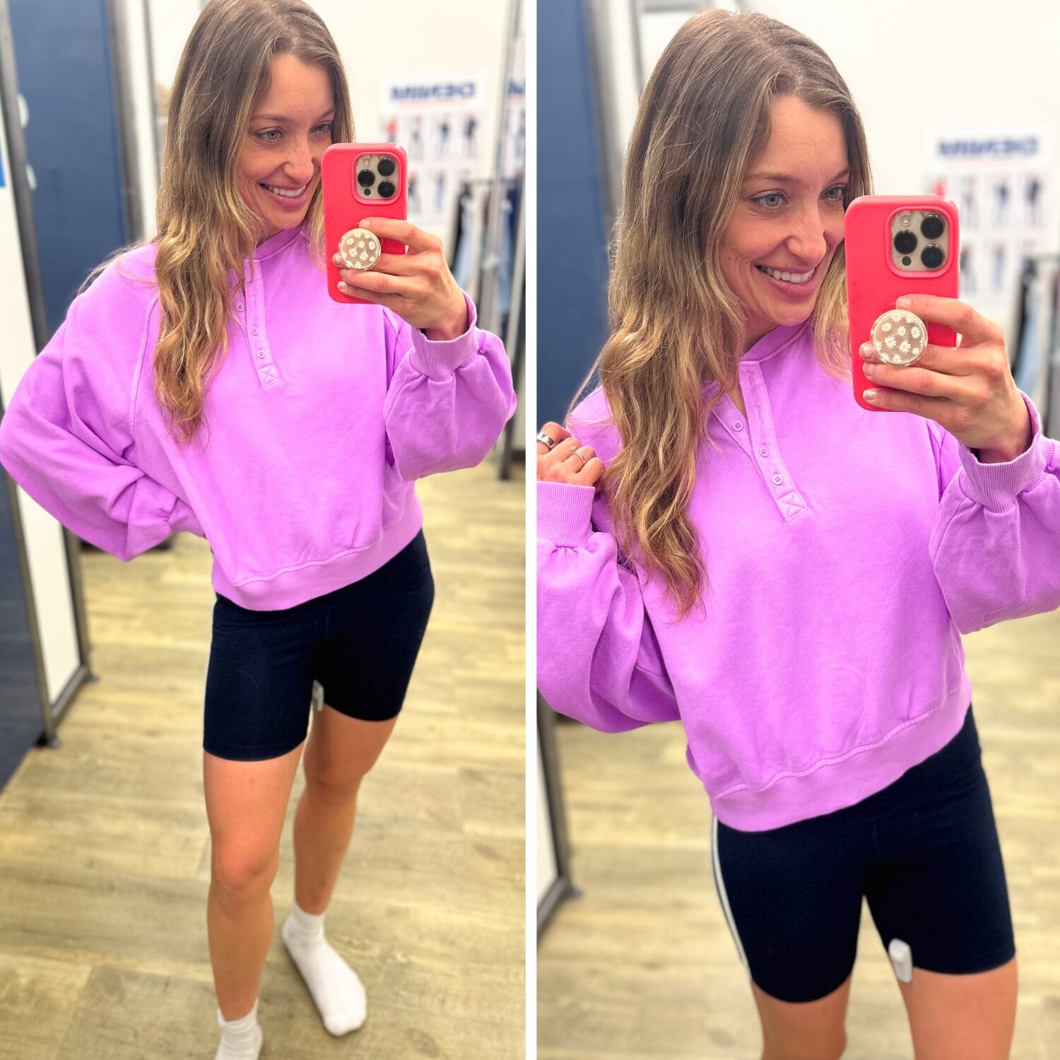 Button Front Sweatshirt [size up if in between] // Bike Shorts [true to size]